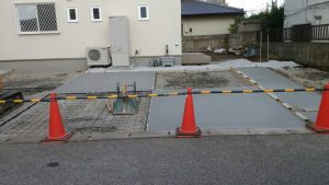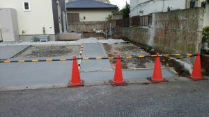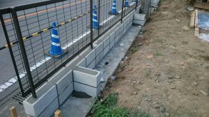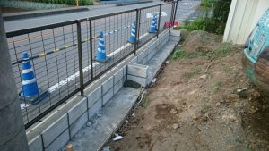 本日は、ブロック積みとフェンス取り付けの現場と土間コン打設と6号砕石を敷きの現場の施工をしました。