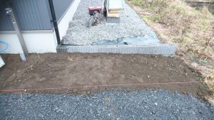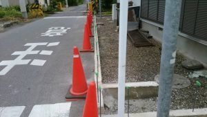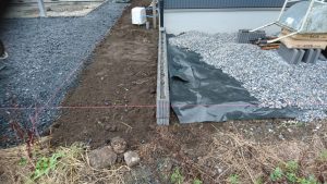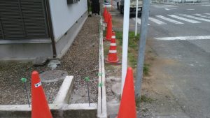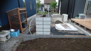 本日は、ブロックを解体してのアンカーを打つ作業・土留めブロックの施工・門柱