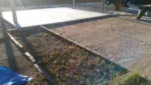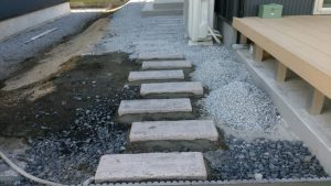 本日は、土間コン打設・門柱・アプローチのコンクリート枕木伏せ