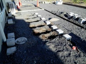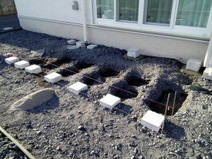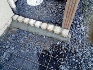 本日は、土間コン打設・見切(ピンコロ)・ウッドデッキ基礎の施工をしました。