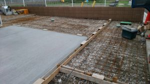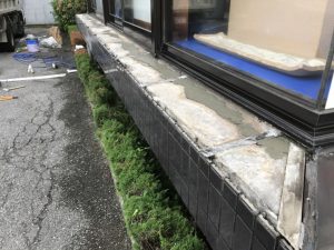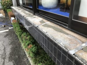 本日は、タイル貼り替えの仕上げ作業・6号を敷いて均す作業・メッシュ張り