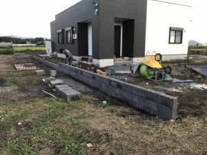 本日は、ポストの取り付け・ブロック積み・目地切りの作業をしました。