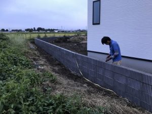 本日は、ブロック積み・目地切りの作業をしました。