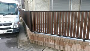 本日は、土間の斫り作業・ブロック積み・目地切り・フェンスの取り付け・ポール建ての作業をしました。