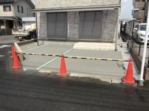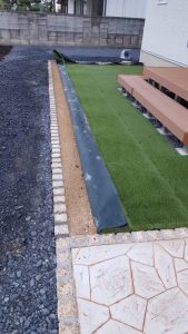 本日は、土間コン打設・ピンコロ敷設・目地・砕石敷設・フェンスの取り付け作業をしました。