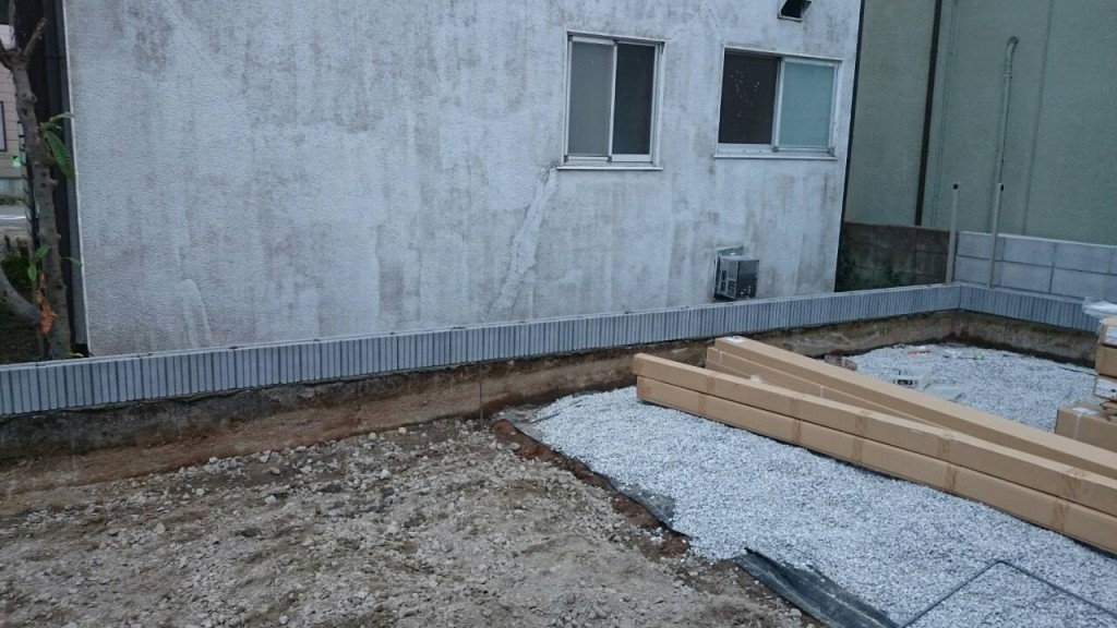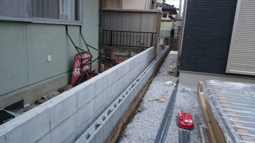 宇都宮市 S町 のネットフェンスの基礎石伏せとフェンスの柱立ての作業をしました。