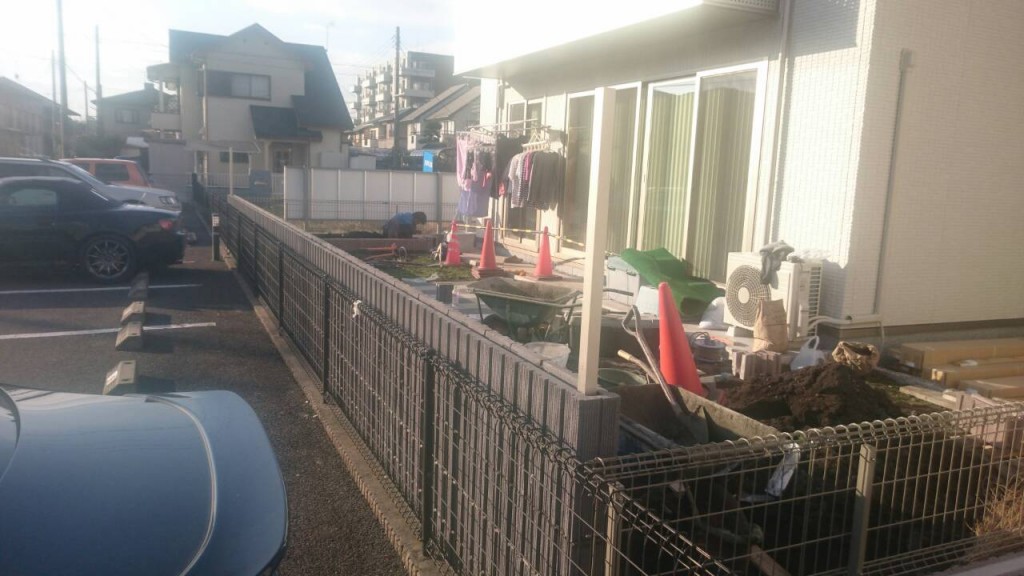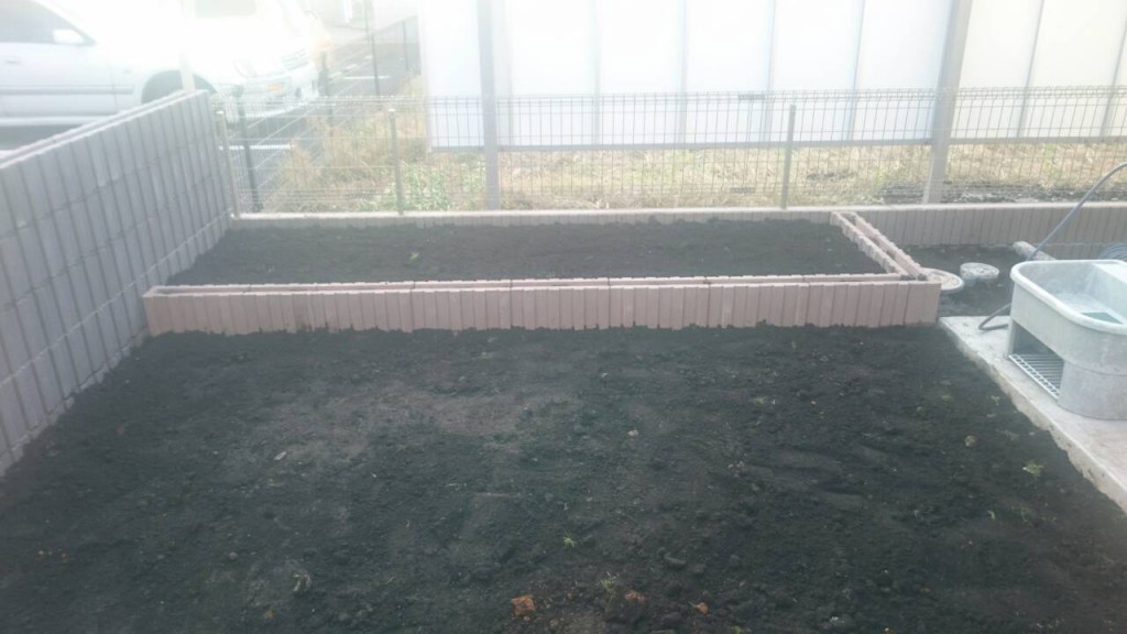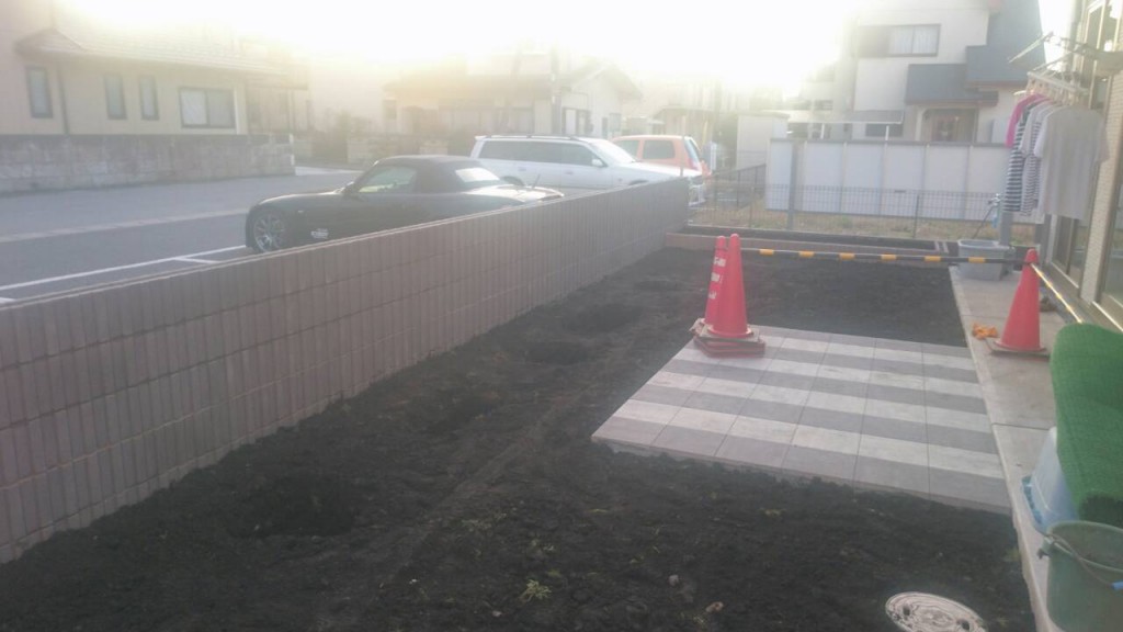 今日は宇都宮市 T町 O様邸のブロック積、フェンスの柱立て、花壇ブロック積、黒土搬入、