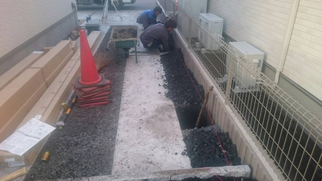 宇都宮市 N町のブロックベース部掘削、ベース生コン打設の作業をしました。