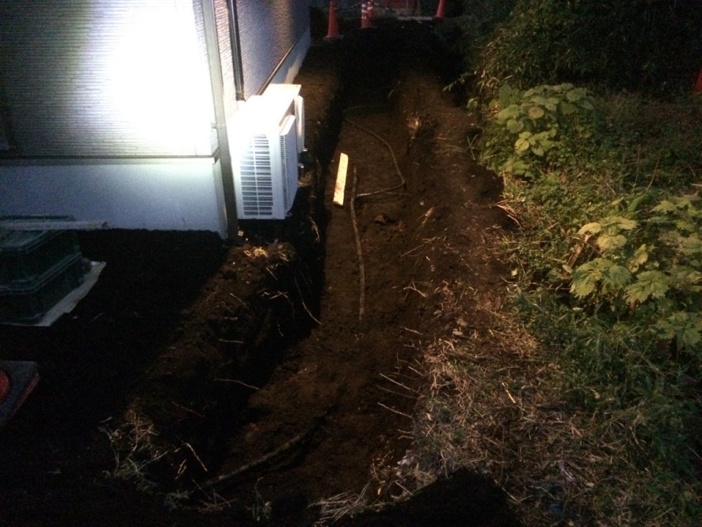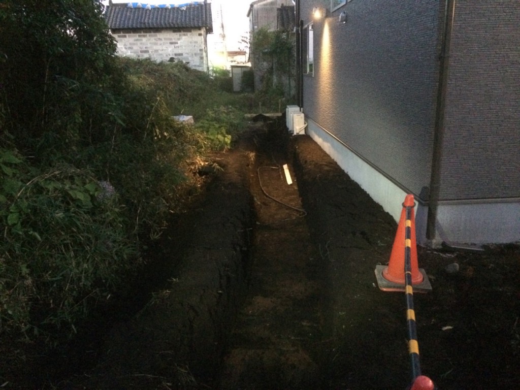 今日は宇都宮市 T町 H様邸の外構工事の着工日で掘削、植栽伐採等の作業と、