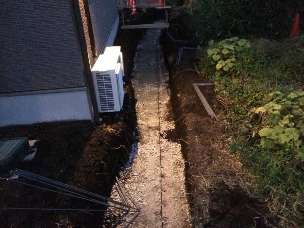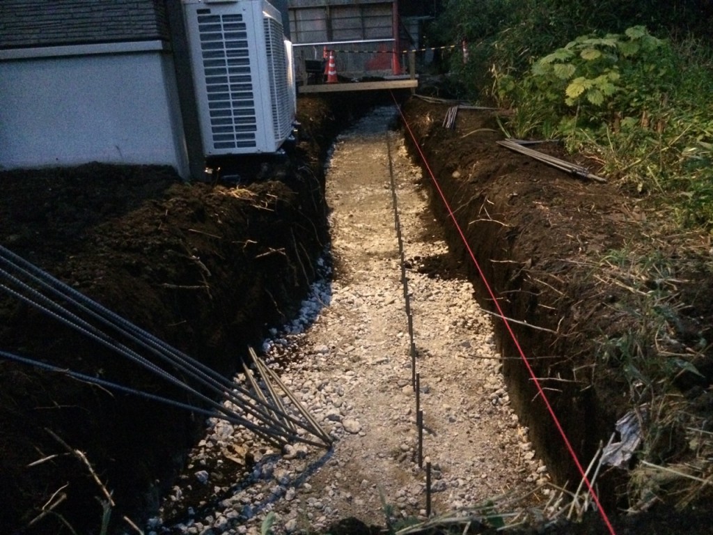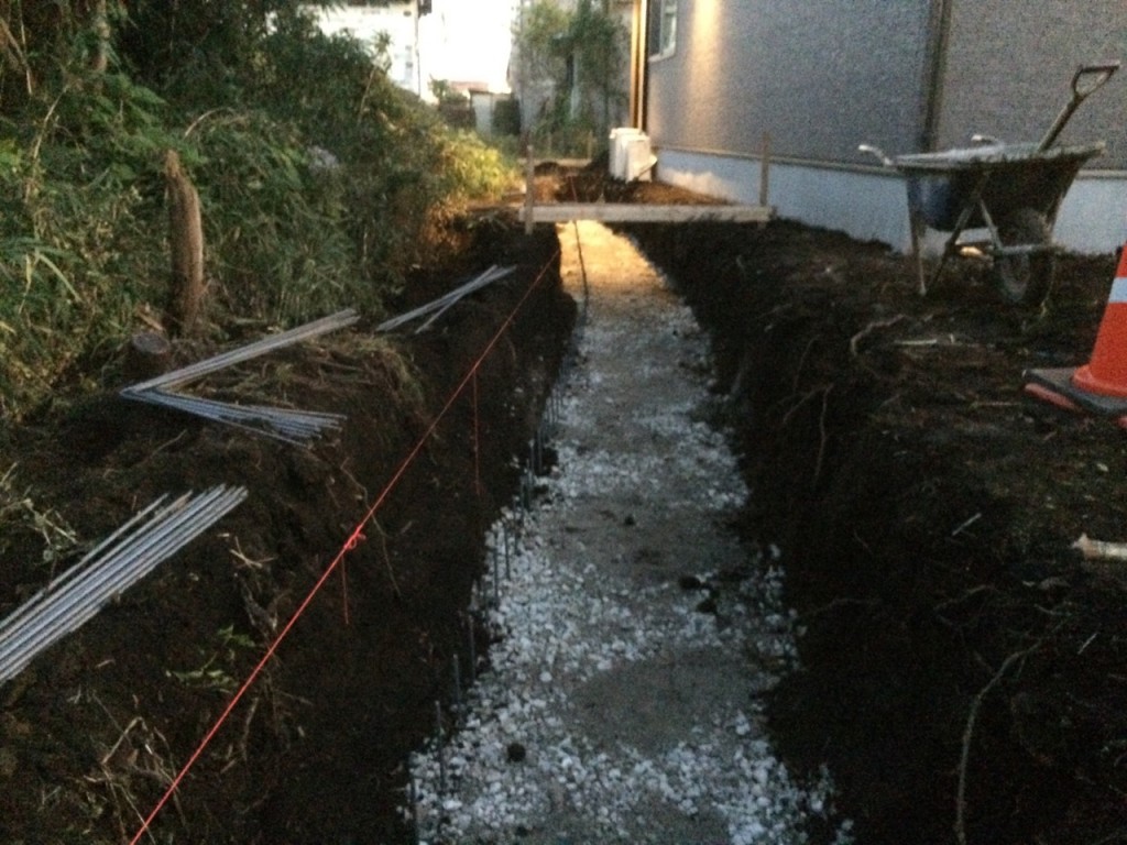 今日は宇都宮市 T町 H様邸の境界基礎立ち上がり部分のベース部掘削、砕石敷き、