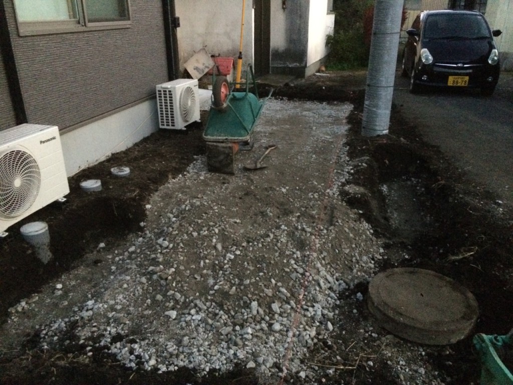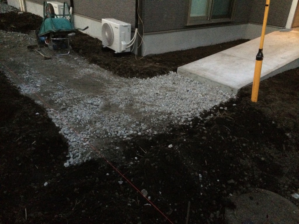 アプローチ部掘削、砕石敷きの作業と、