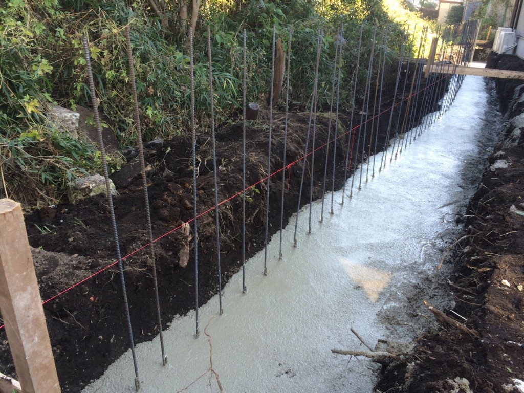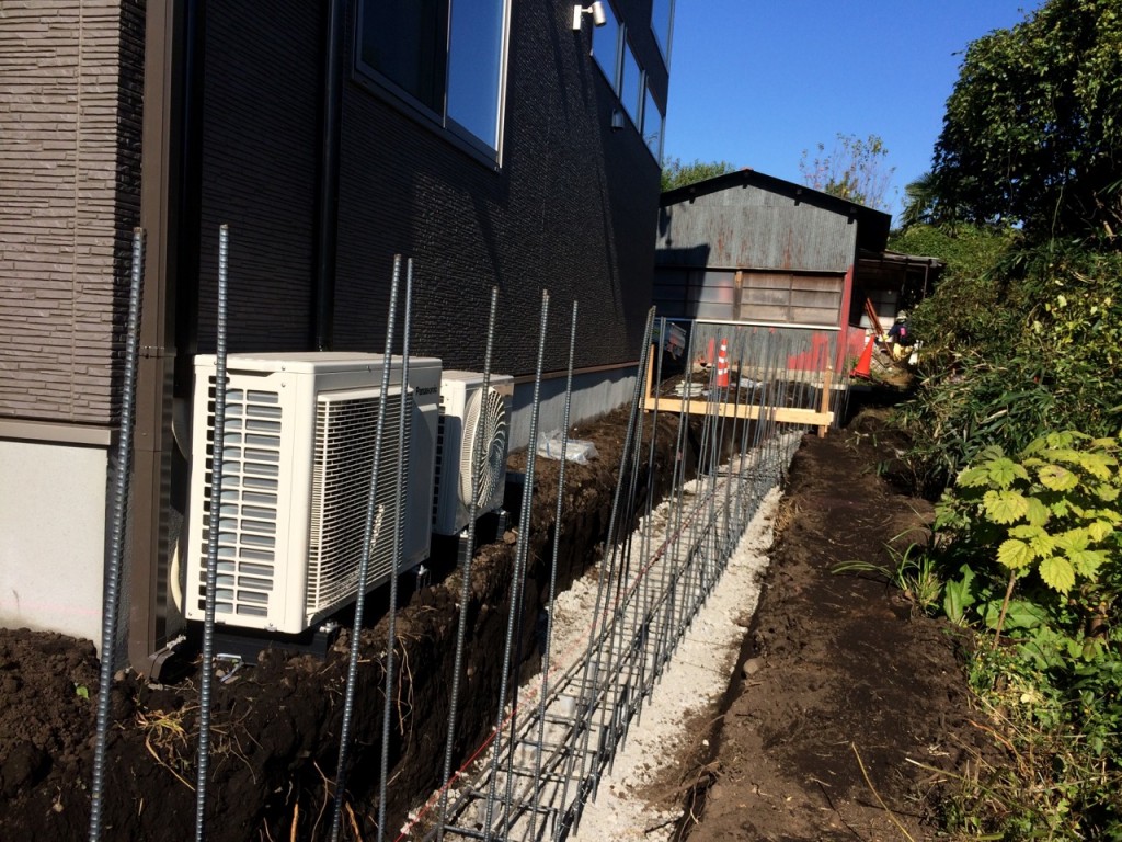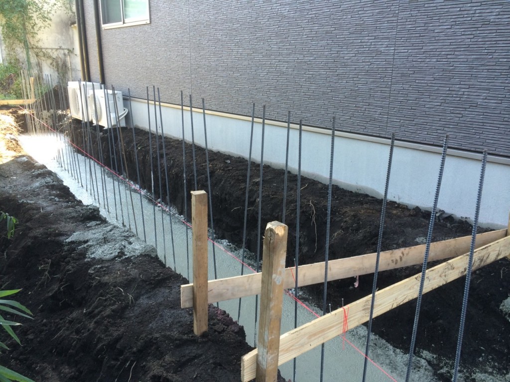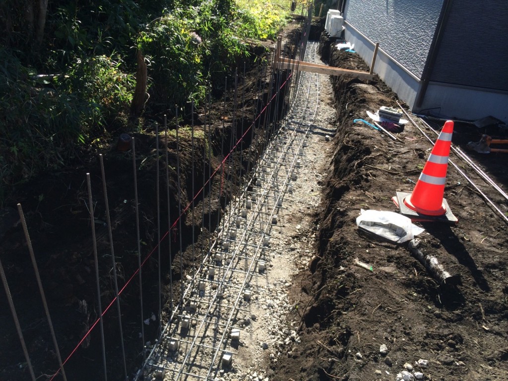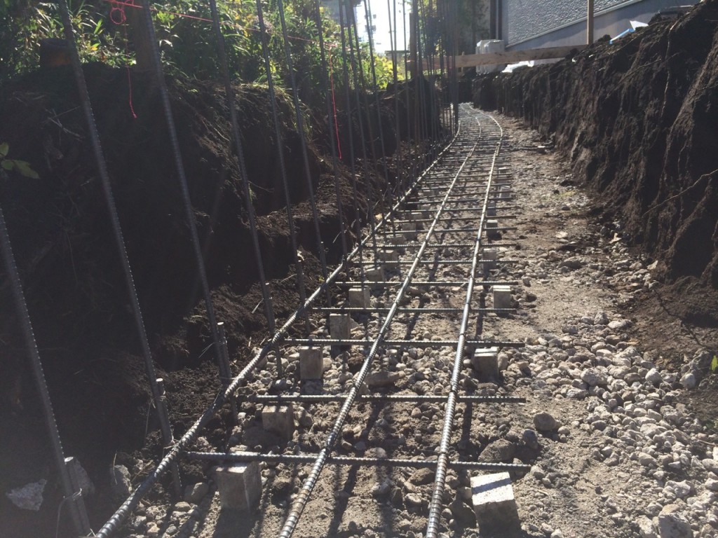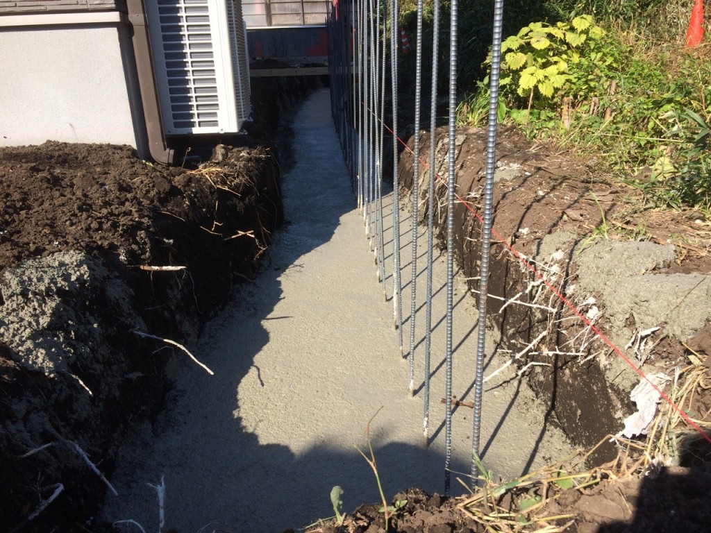 今日は宇都宮市 T町 H様邸の立ち上げ基礎部の鉄筋配筋、ベース生コン打設、