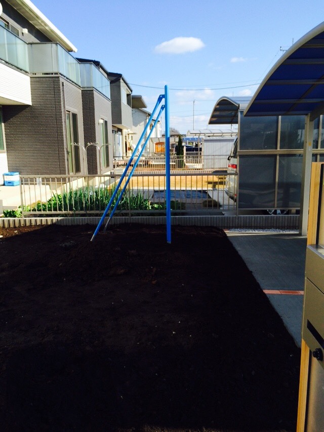 今日は 真岡市の表札付け、鉄棒取付、カーポート雨樋付けの作業と、