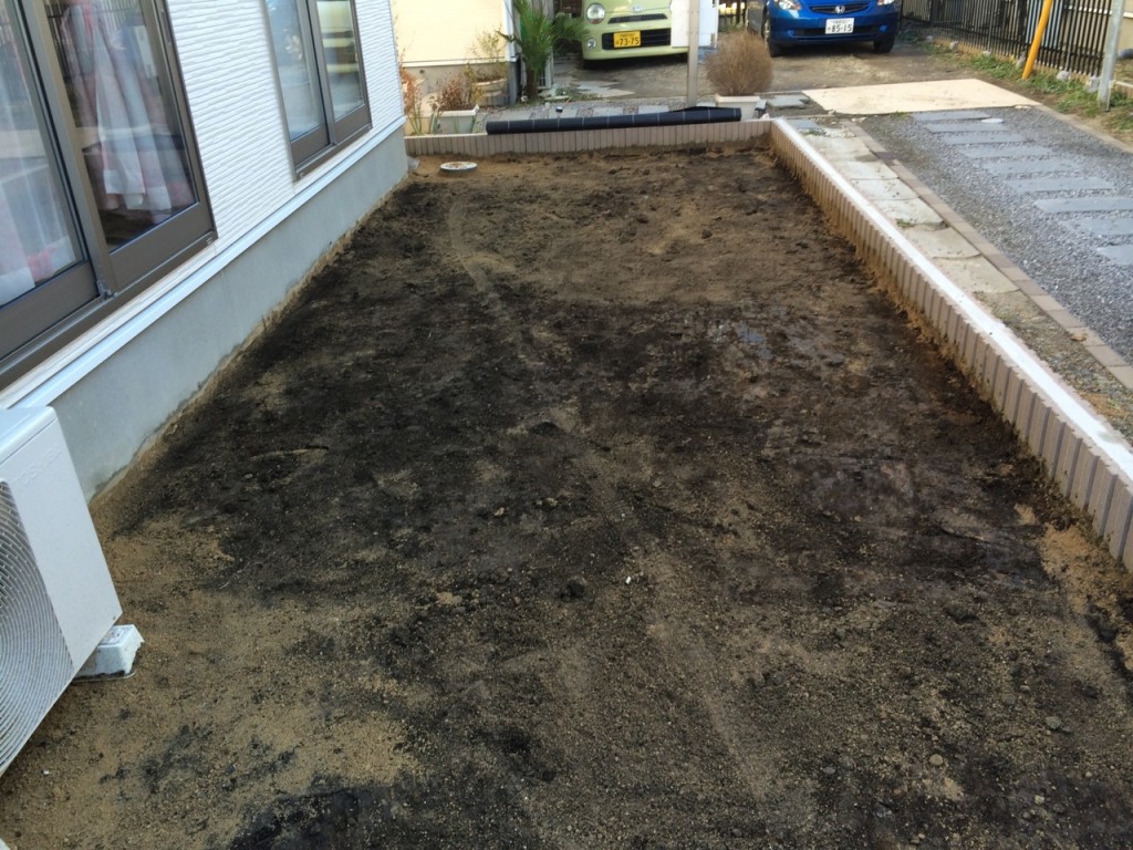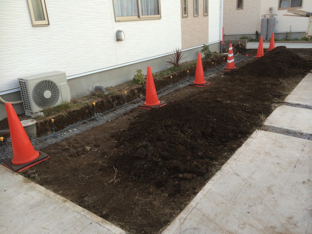 今日は真岡市の、掘削、ブロックベース部掘削、鉄筋配筋、防草シート、6号砕石敷きの作業をしました。
