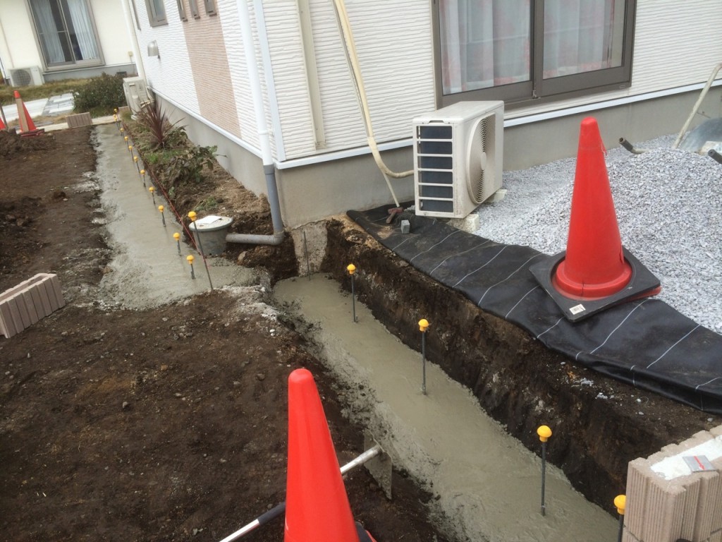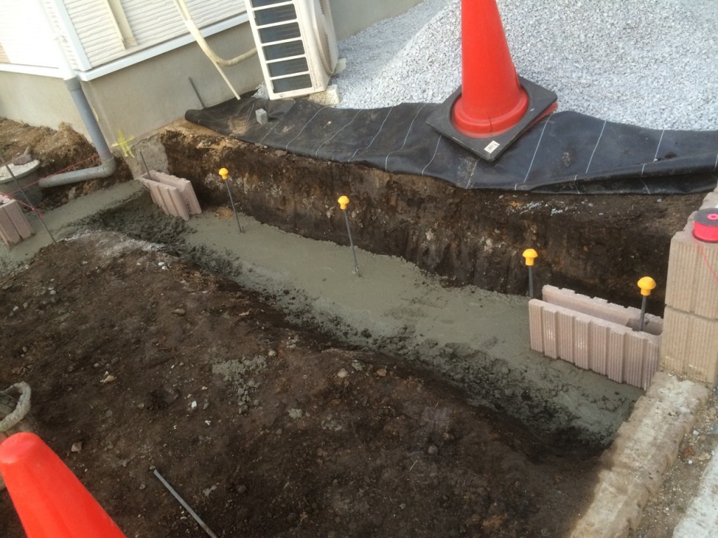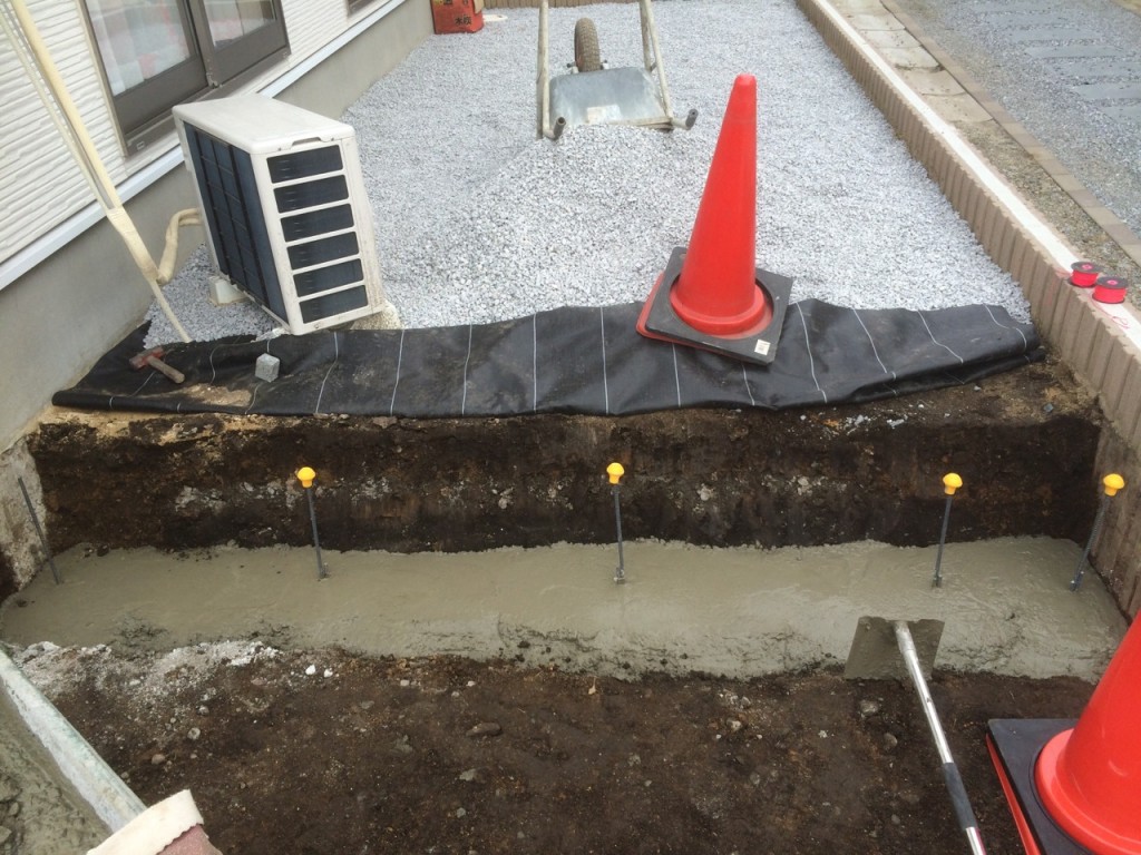 今日は真岡市のブロックベース生コン打設、ブロック積の作業をしました。