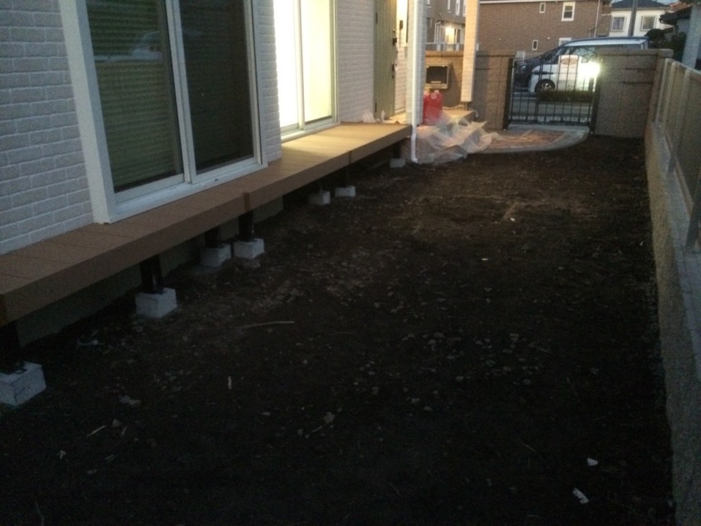 今日は壬生町の残りのブロック積、ウッドデッキ組、門前生コン打設の作業と、
