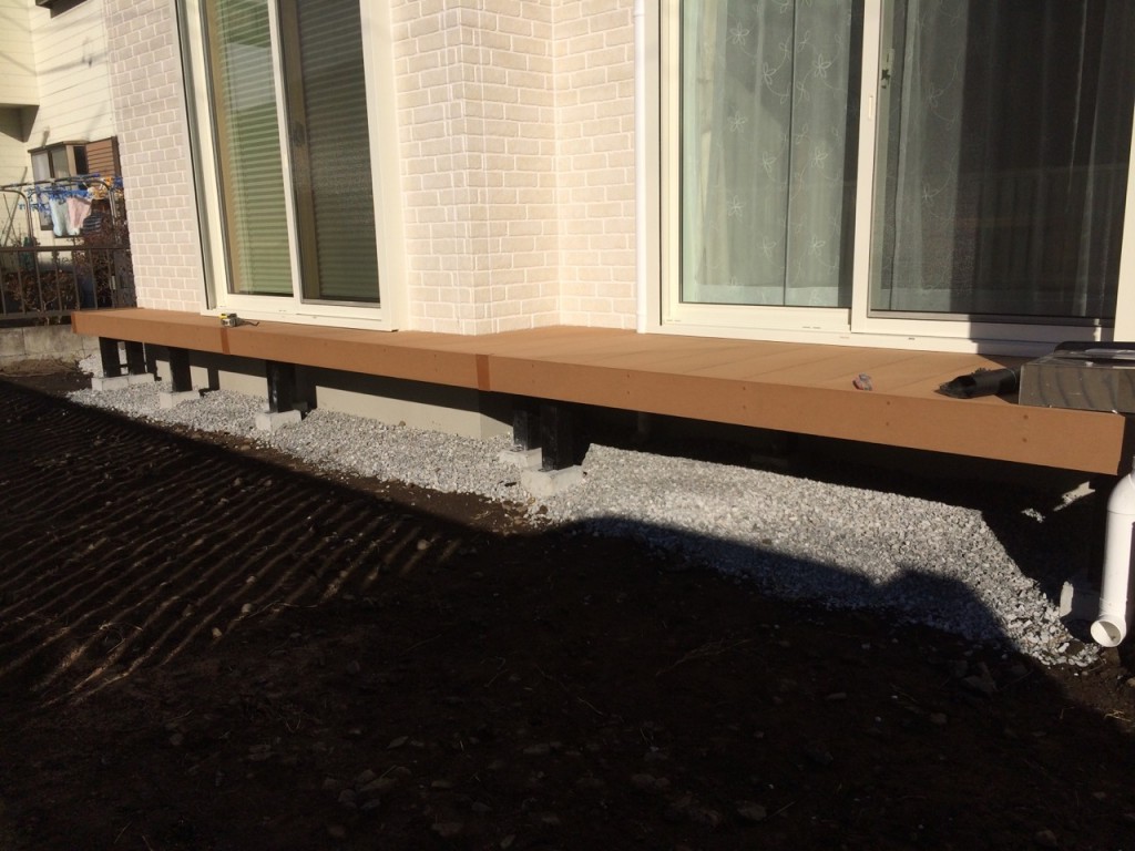 今日は壬生町のウッドデッキ下の防草シート敷き、6号砕石敷きの作業をして完工となりました。