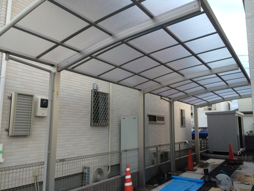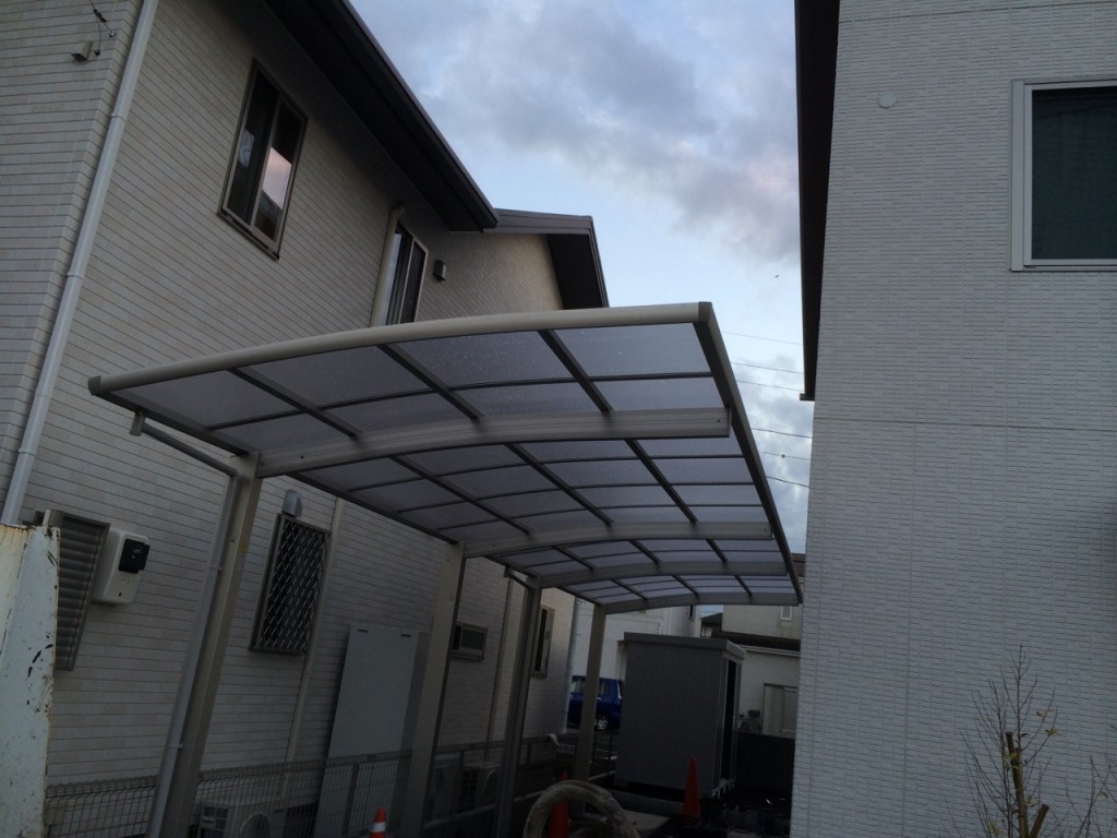 今日は宇都宮市 T町 H様邸の残りのお稲荷さん移動、カーポート雨樋延長、サイクルポート物干取付の作業と、
