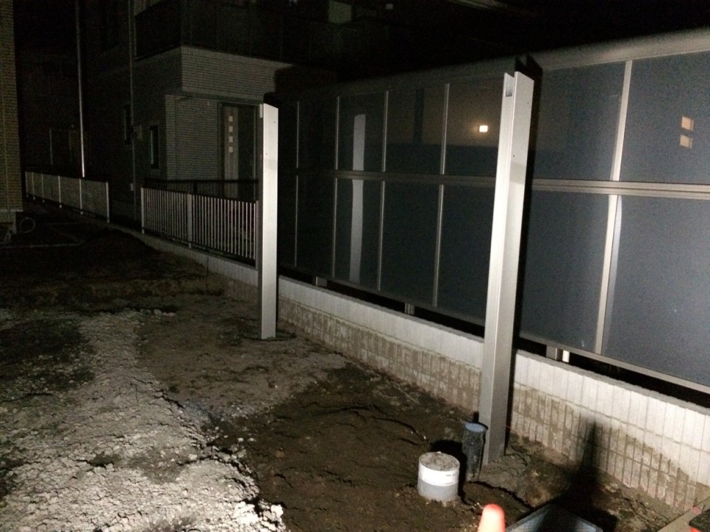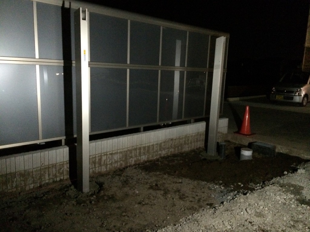 カーポートの柱立て、フェンスの柱立ての作業と、
