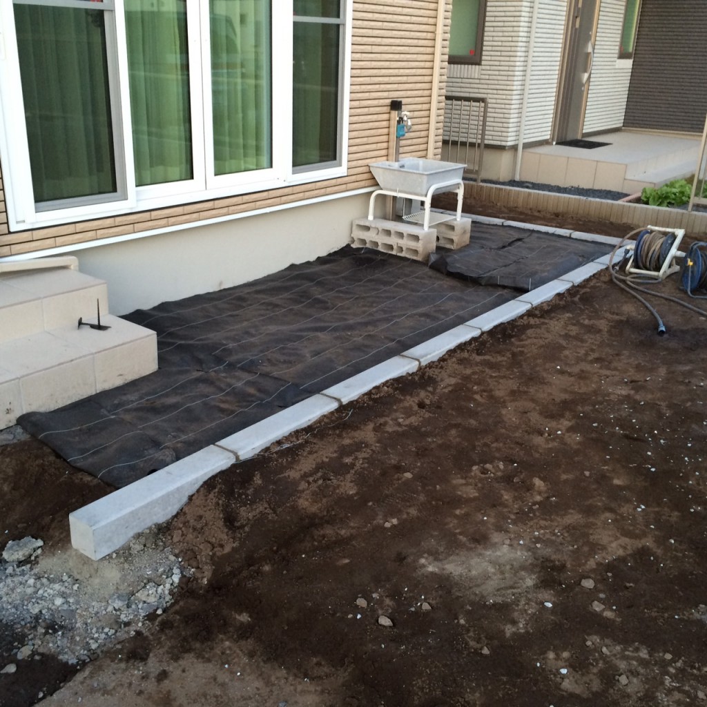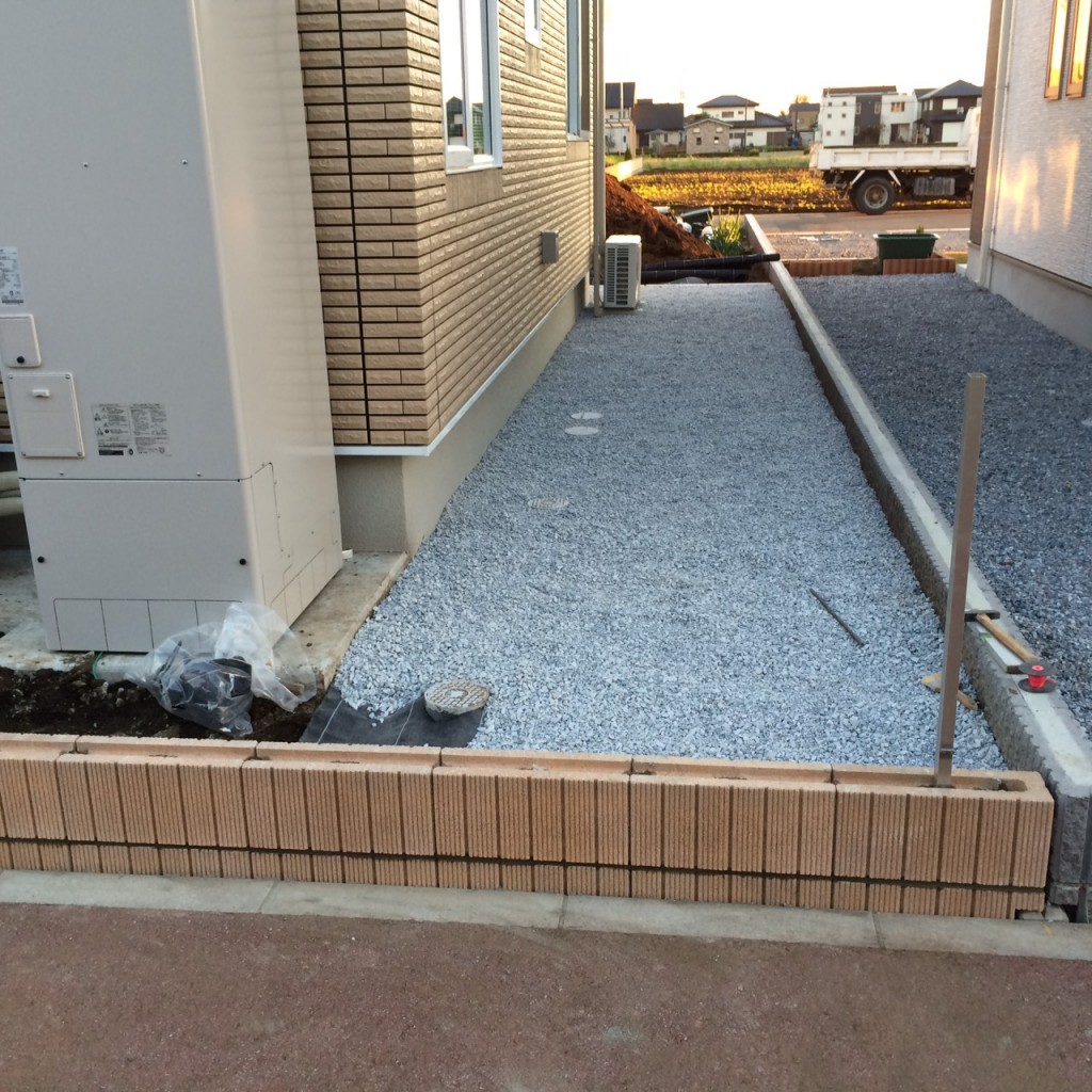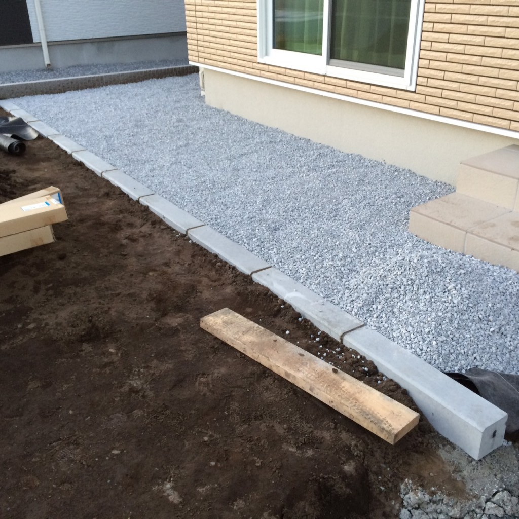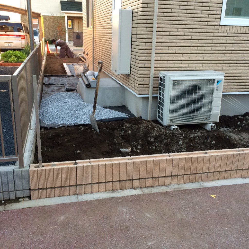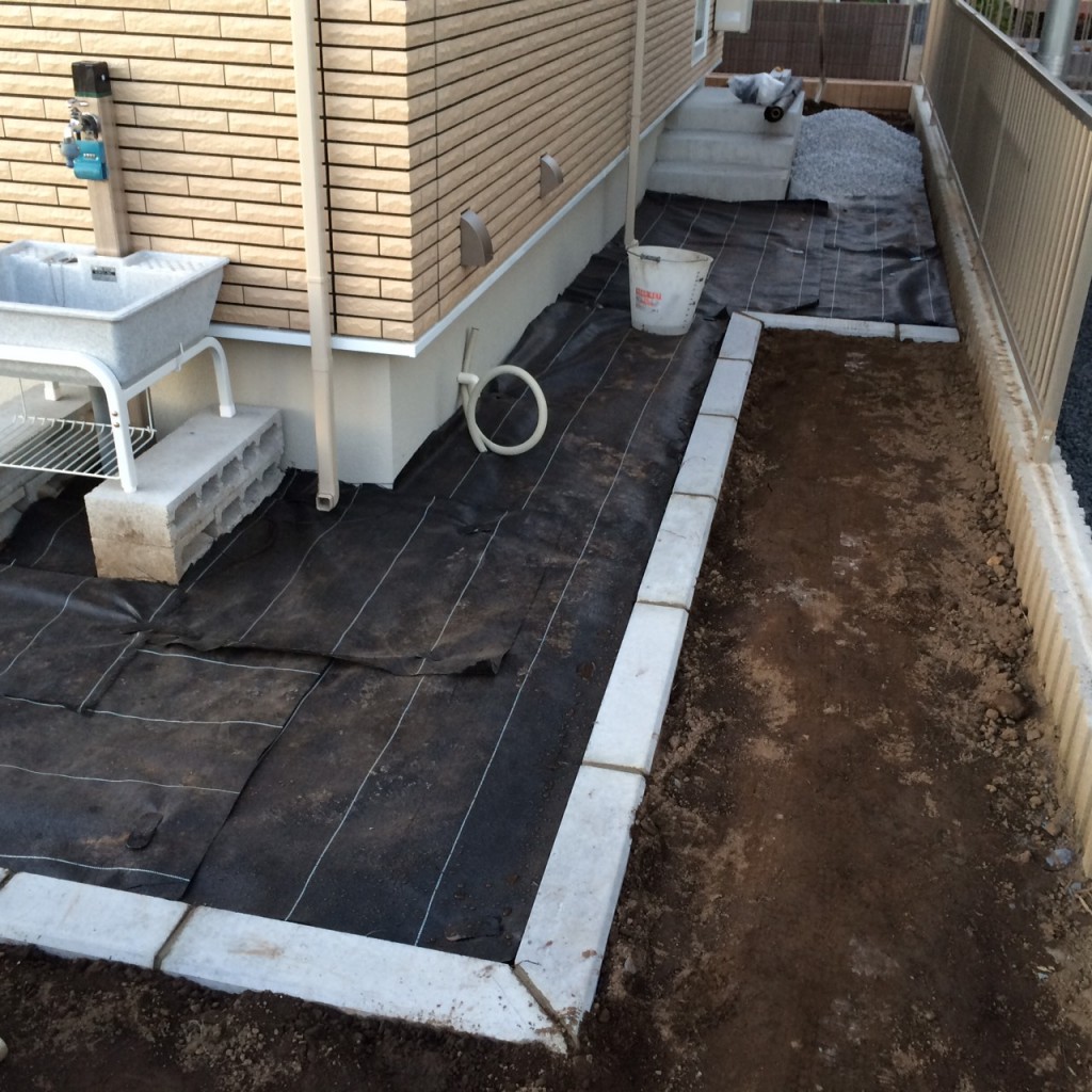 今日は真岡市の地先伏せ、ブロック積、防草シート敷き、6号砕石敷き、