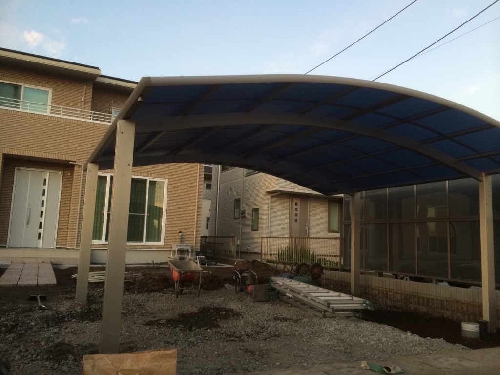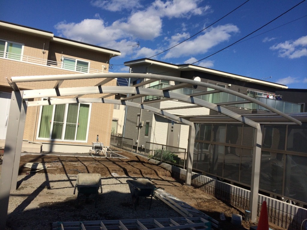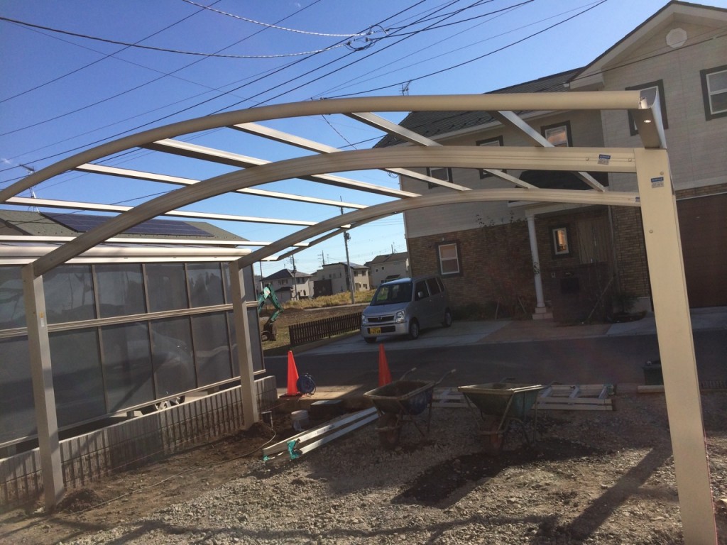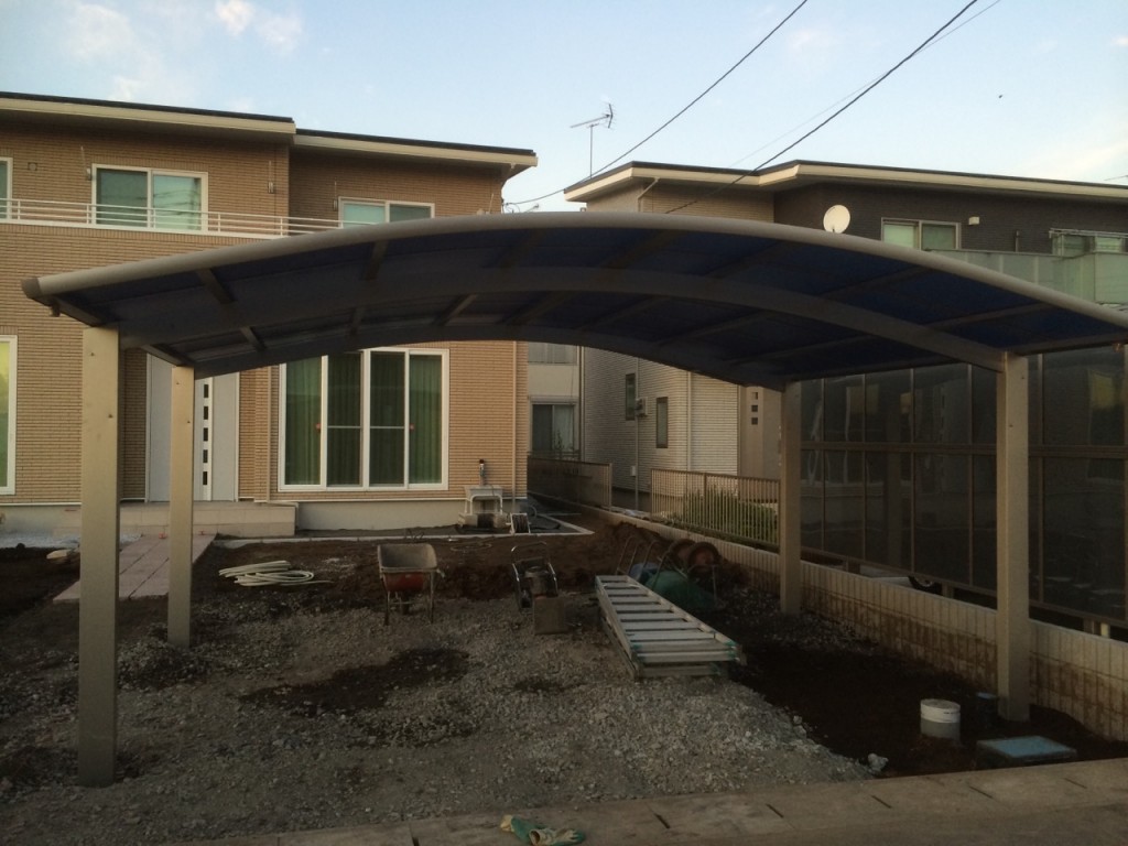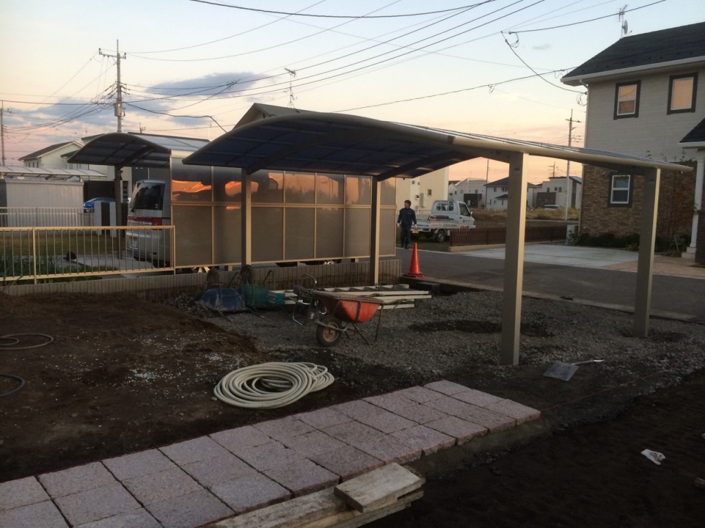 真岡市のカーポート組立、アプローチ敷石、6号敷きの作業をしました。