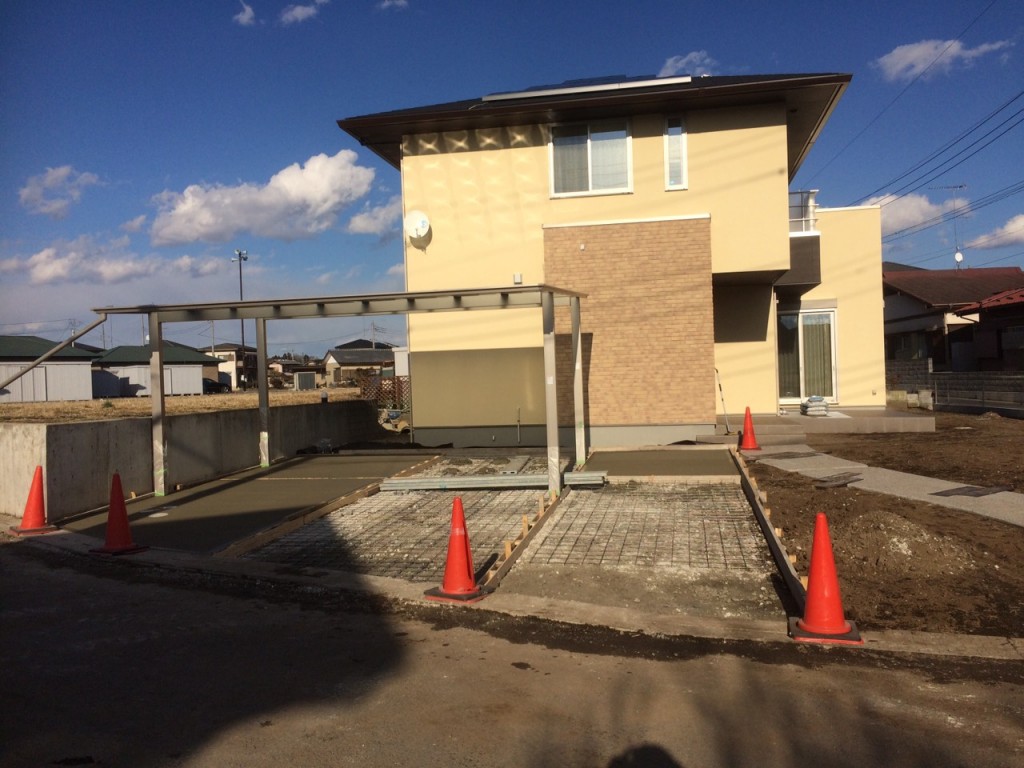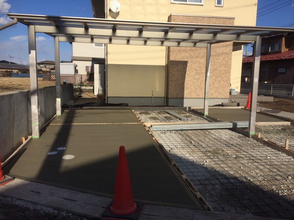 今日は真岡市の駐車場土間コンクリート打設作業と、