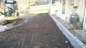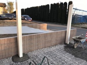 今日は宇都宮市 S町のブロック積、カーポート柱立て、アプローチ見切りレンガ敷設の作業と、