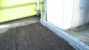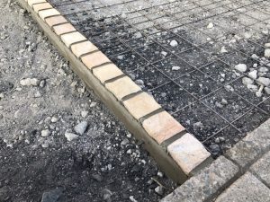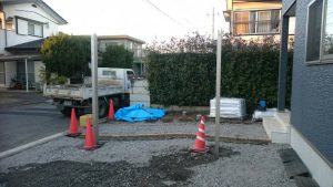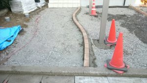 今日は宇都宮市 S町のブロック積、カーポート柱立て、アプローチ見切りレンガ敷設の作業と、