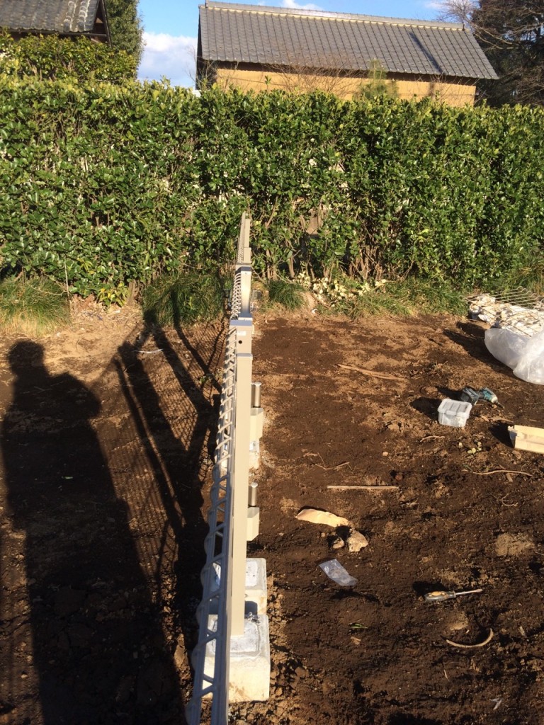 宇都宮市 S町 のフェンスの基礎石伏せの作業と、