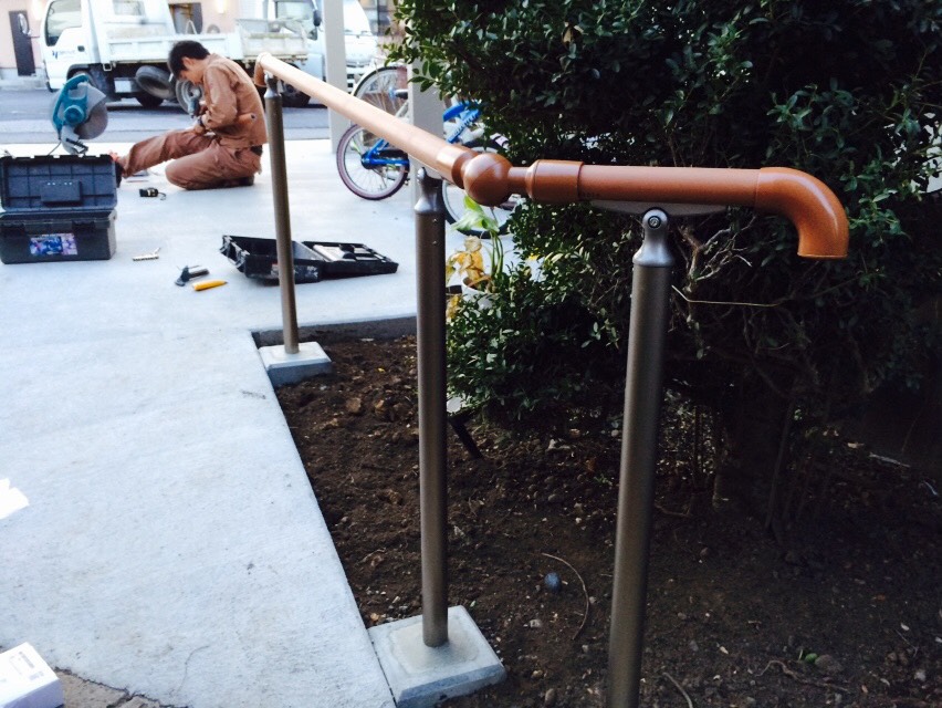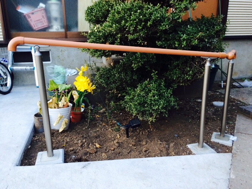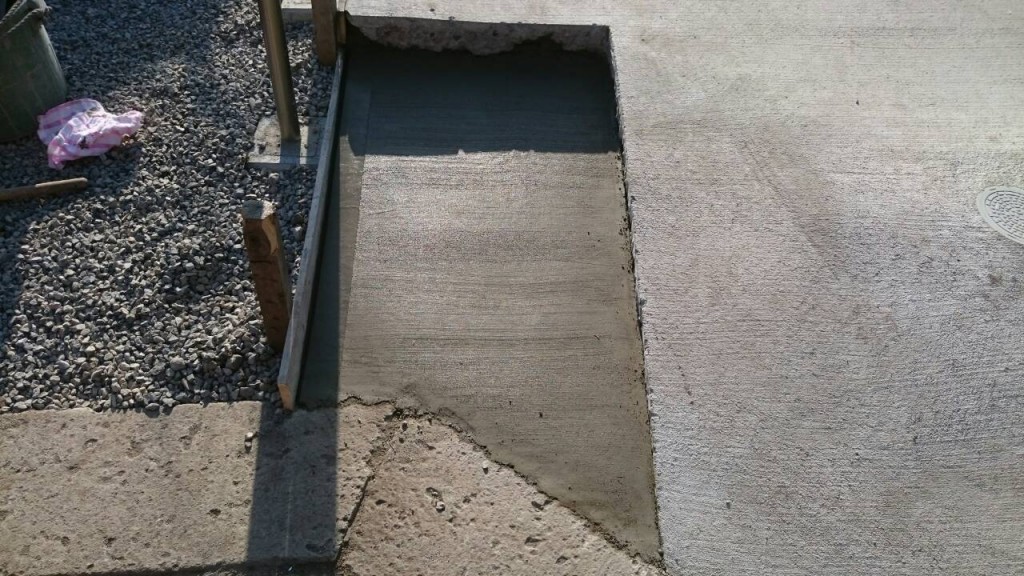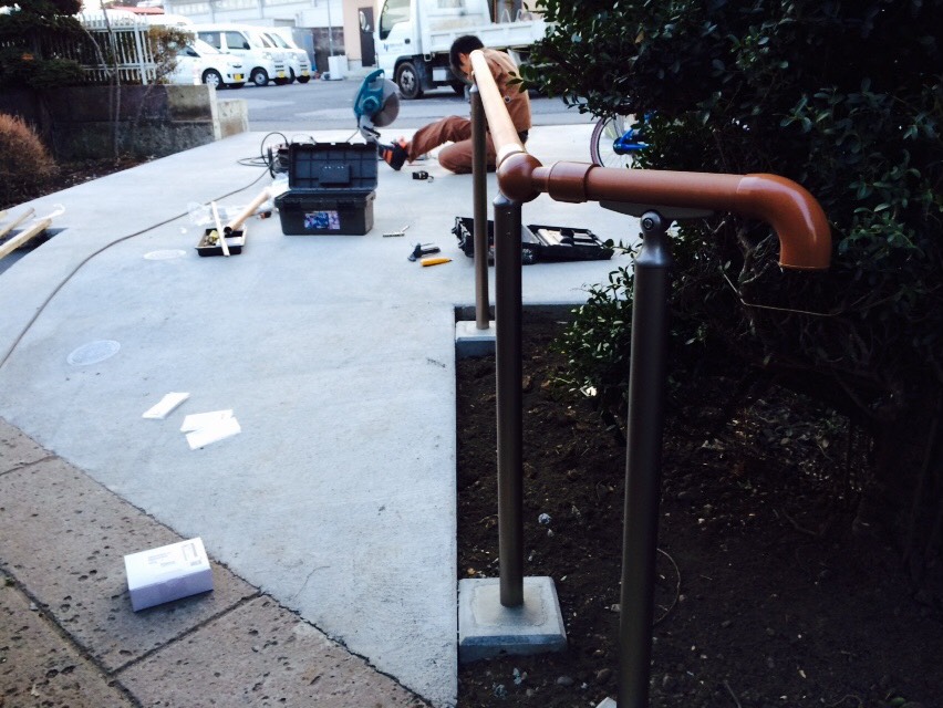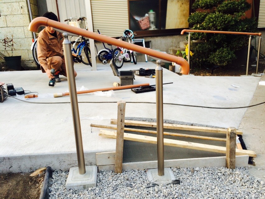 宇都宮市 TA町の手すり取付、スロープ生コン打設作業と、