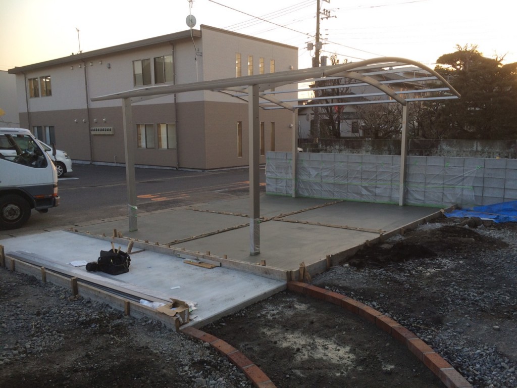 今日は宇都宮市 T町の駐車場土間コンクリート打設、目隠しフェンスすきまカバー取付作業と、