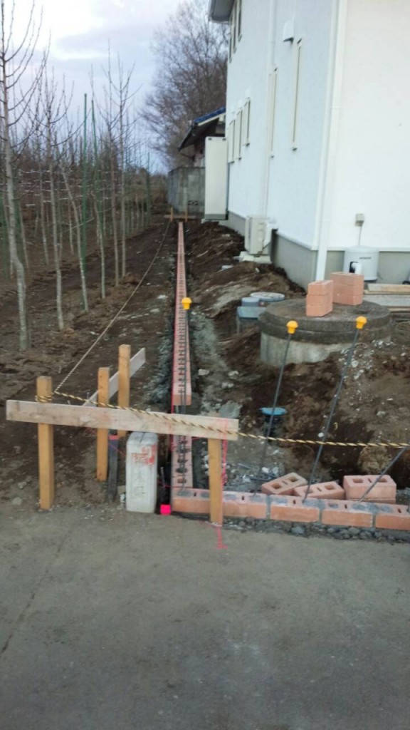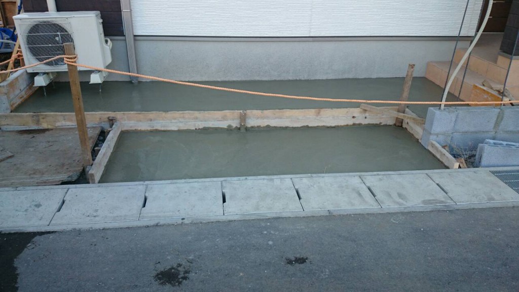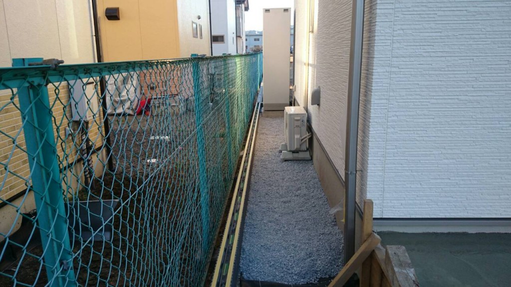 今日は、鹿沼市 M町 の6号砕石敷き、犬走りの生コン打ち、アプローチのベース打ちの作業と、