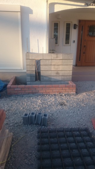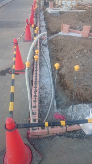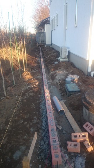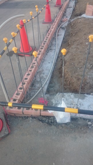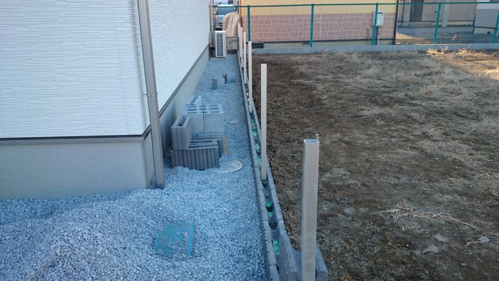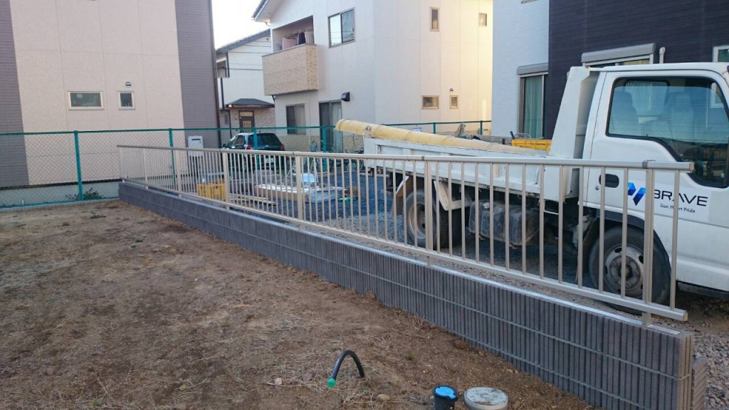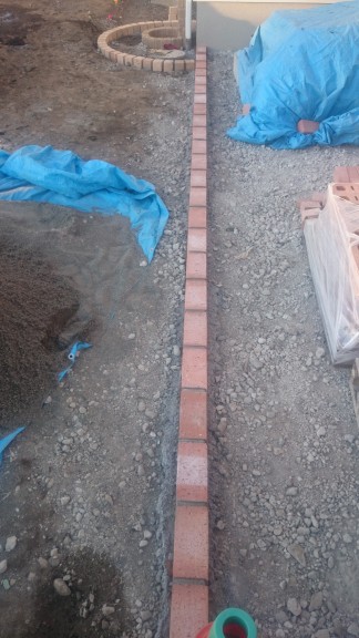 小山市 A町 のレンガ積、見切レンガ、ピンコロの目地切、門柱ブロック積、門柱部分のフェンス取付の作業をしました。