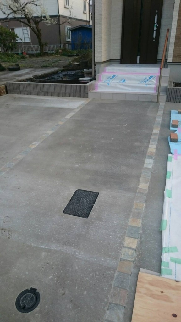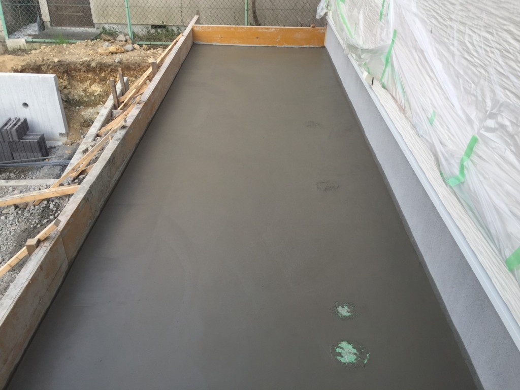 今日は宇都宮市 Y町の犬走り生コン打設作業と、