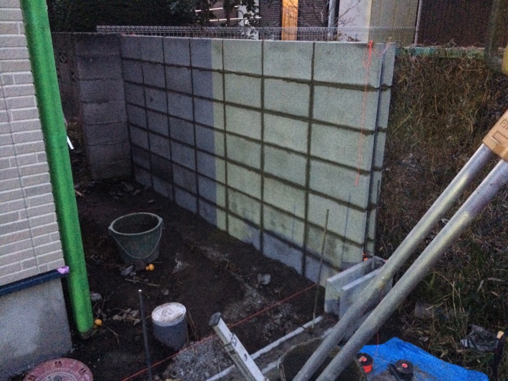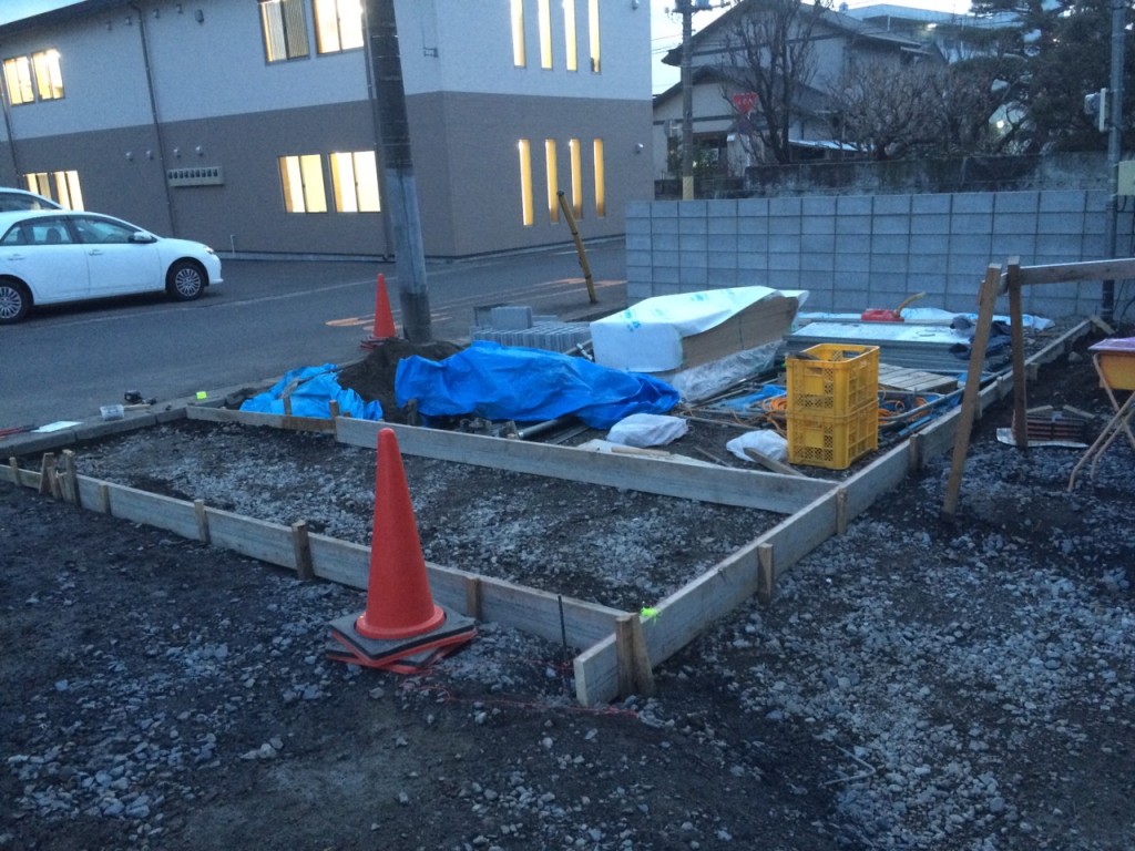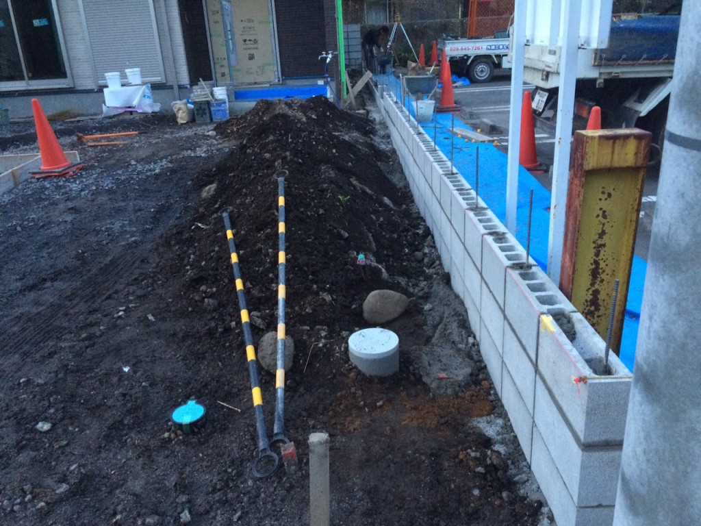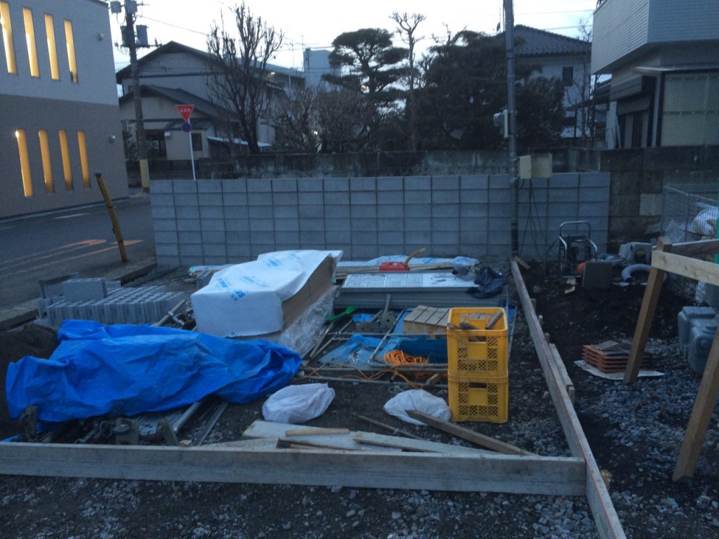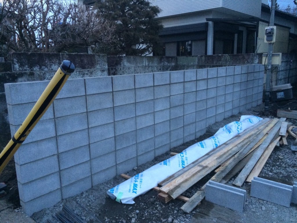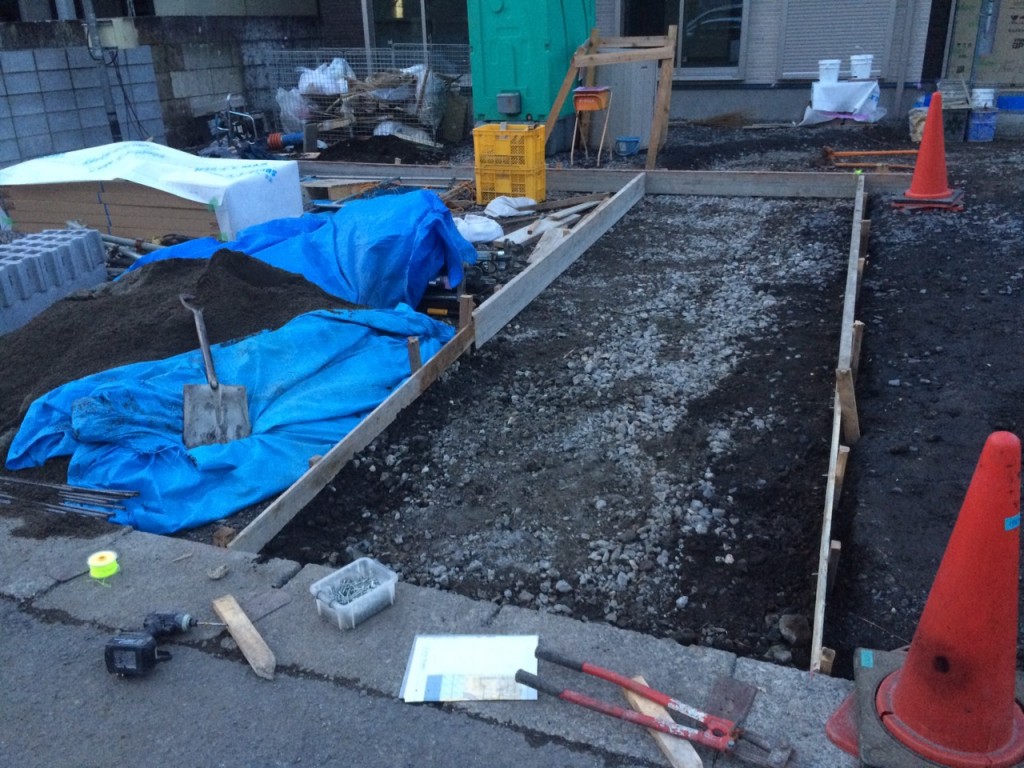 今日は宇都宮市 T町のブロック積、駐車場土間コン部枠組の作業と、