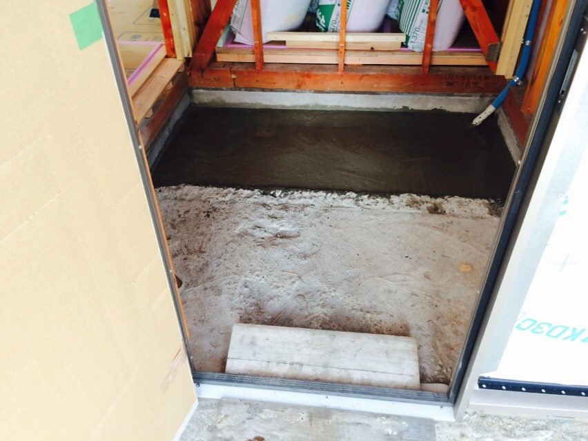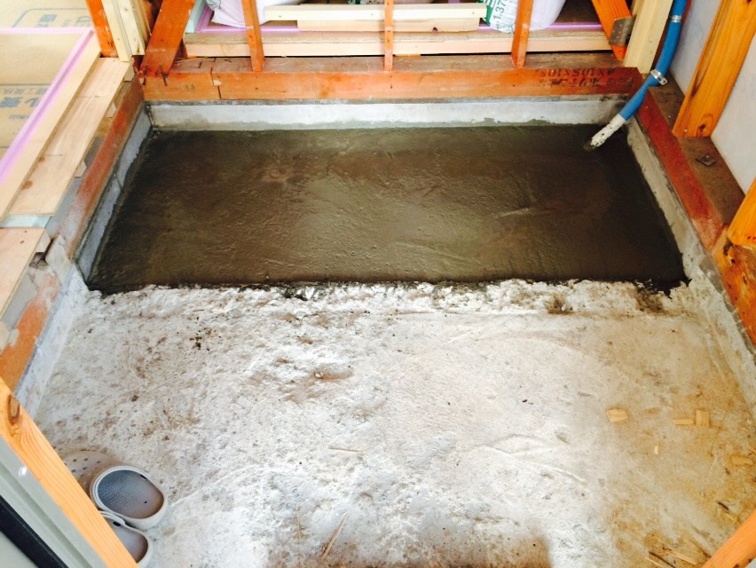芳賀町の玄関土間のタイルの下地の土間コン打設作業と、