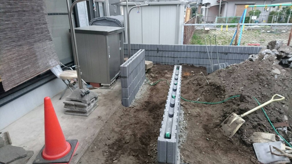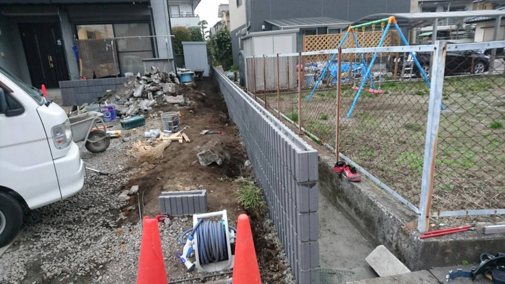 宇都宮市 H町 T様邸ブロック積の作業をしました。