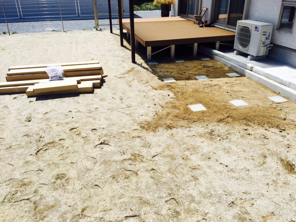さくら市 U町のウッドデッキ束石敷設の作業をしました。