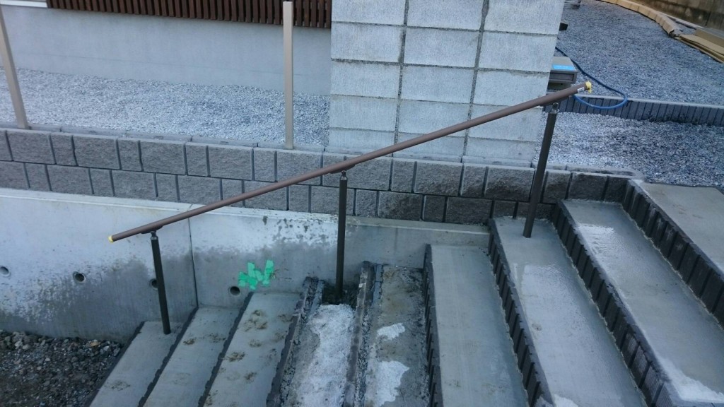 今日は宇都宮市 Y町 O様邸のカーポート柱立て、手すり取付の作業と、