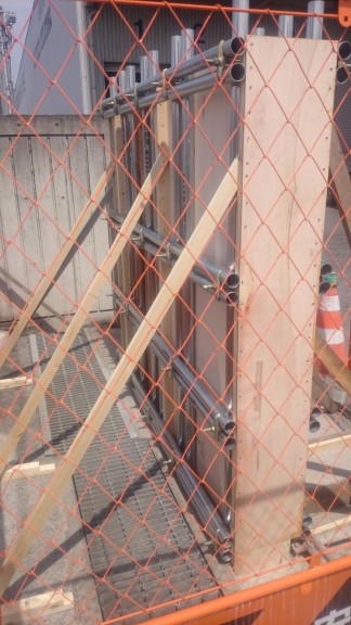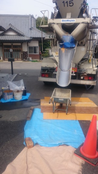 今日は二班に別れ、一班は小山市 A町のフェンスのコア抜きと、整地、枕木平板伏せの作業と