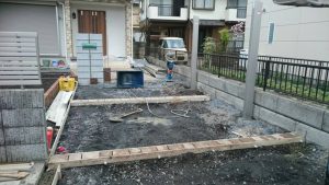 宇都宮市 TO町のピンコロ敷設、カーポート柱立ての作業をしました。