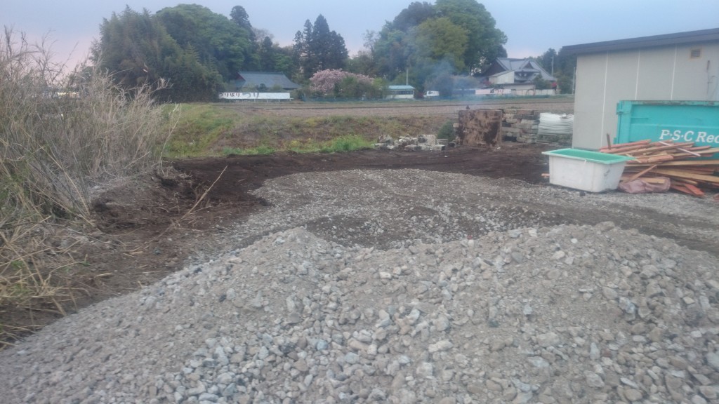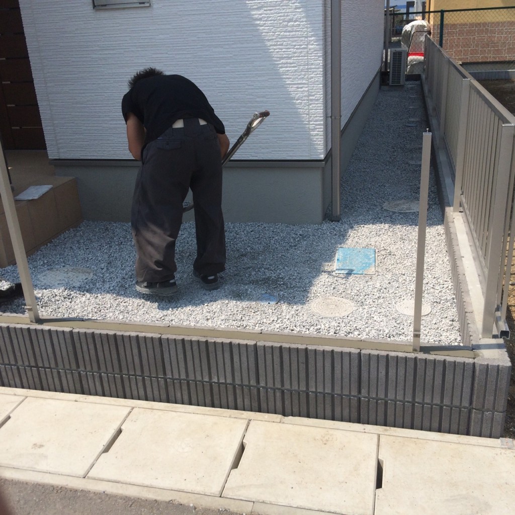 鹿沼市 K町 の砕石敷き、フェンス取付、ブロック天端仕上の作業をして、午後から自社にあった残土出し、整地をしました。