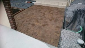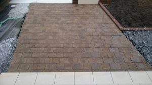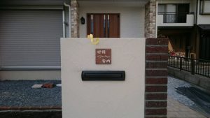今日は宇都宮市 T町のインターロッキング硬化目地砂入れ、表札取付の作業と、