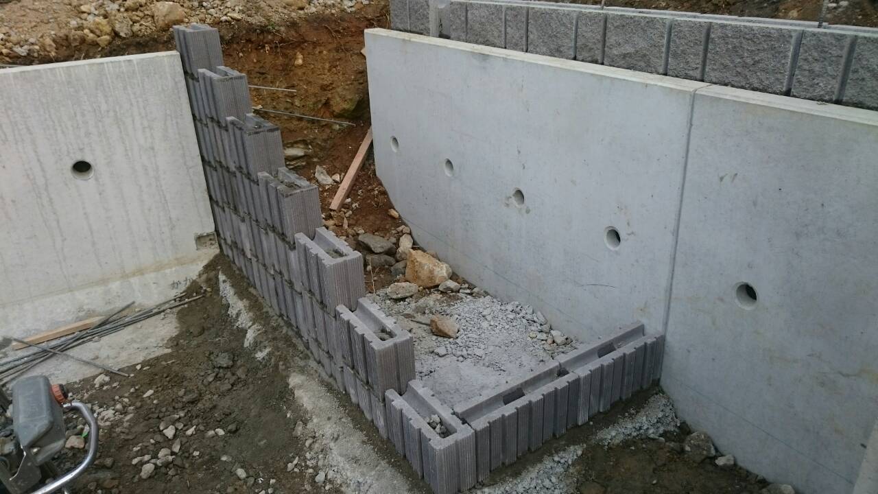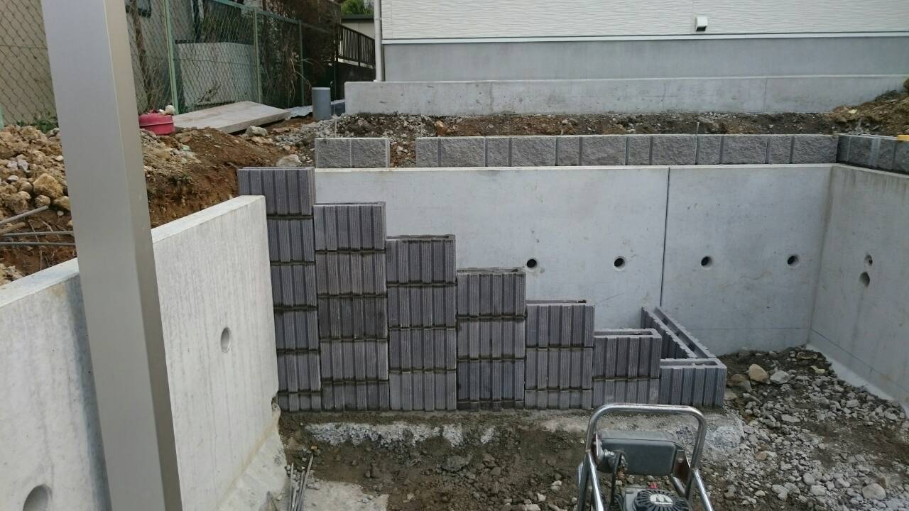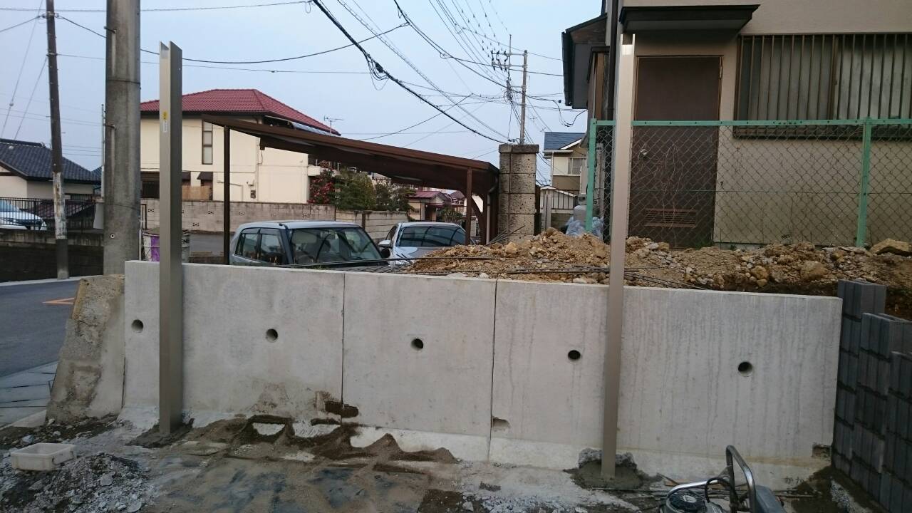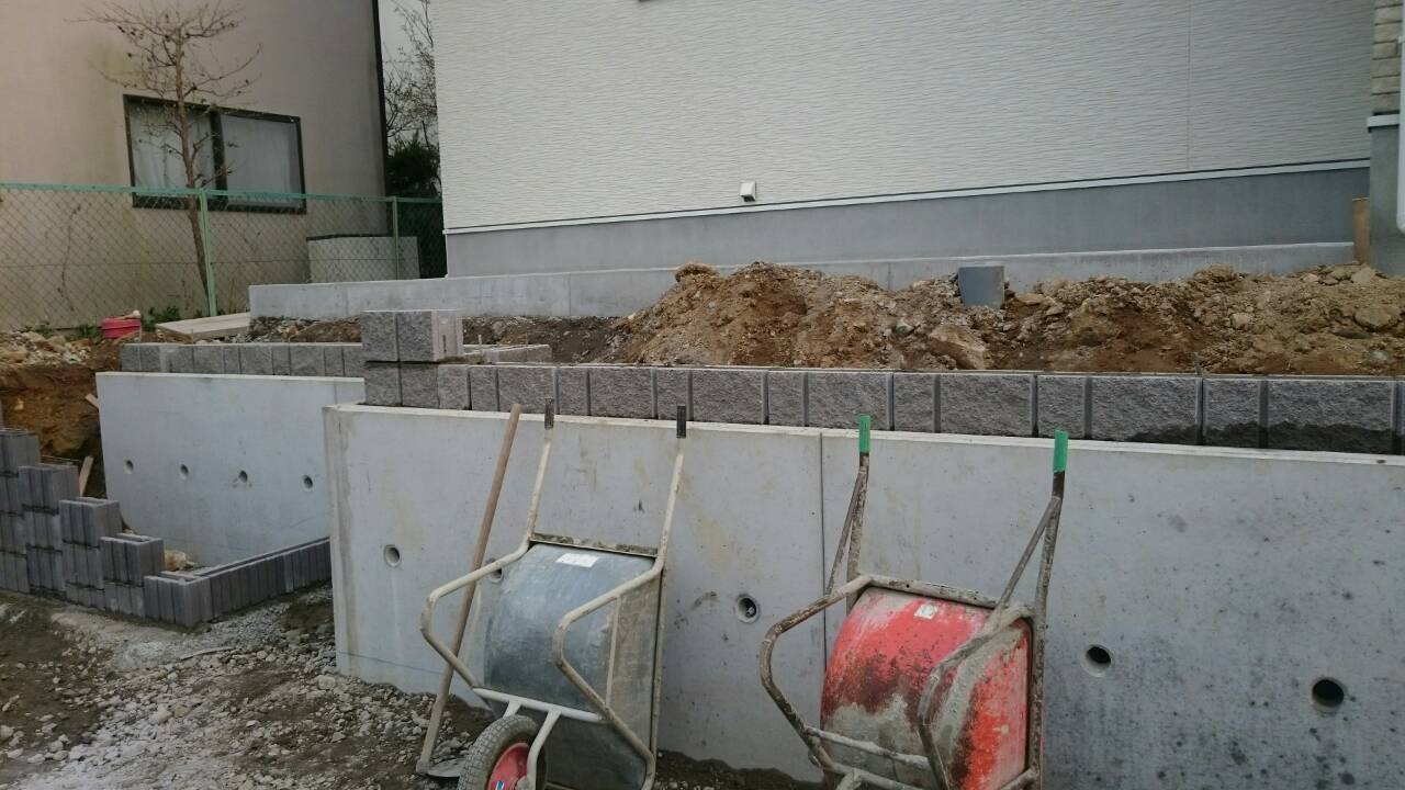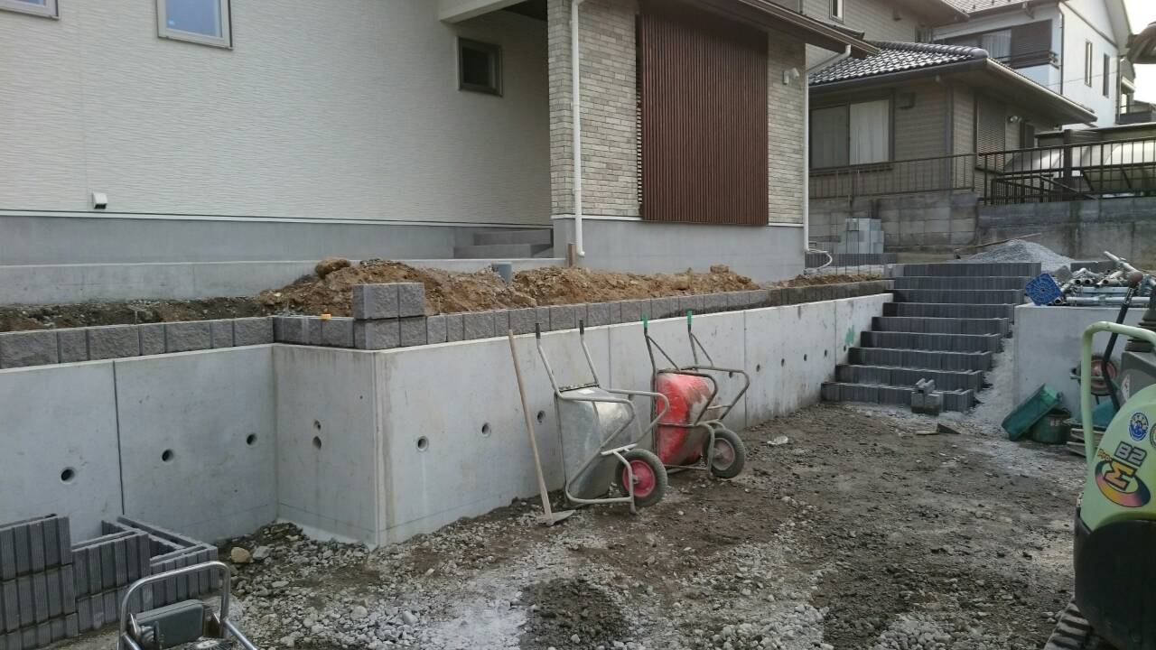 今日は宇都宮市 Y町 O様邸のステップブロック積、土留ブロック積、カーポート柱立ての作業と、