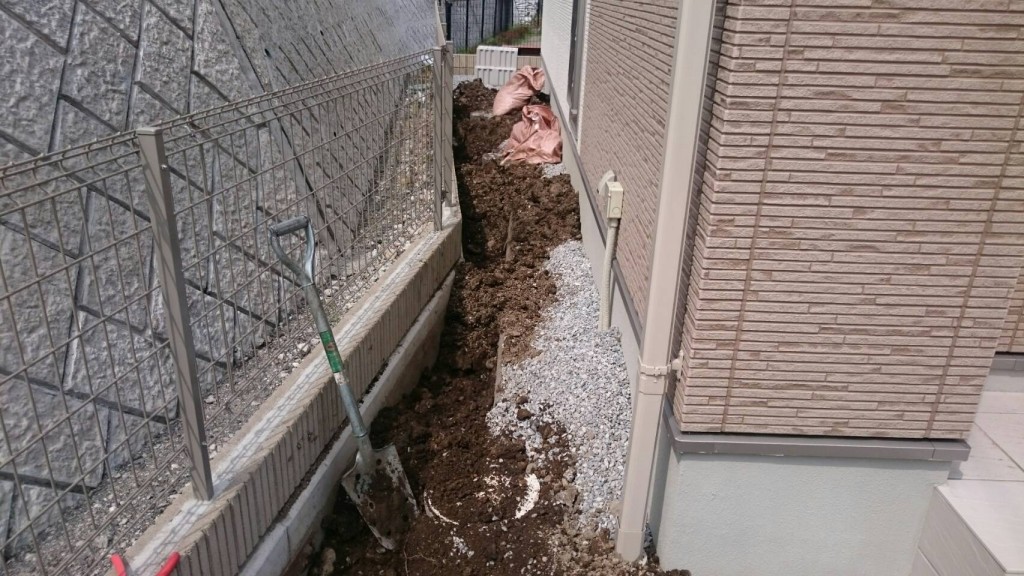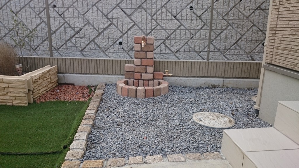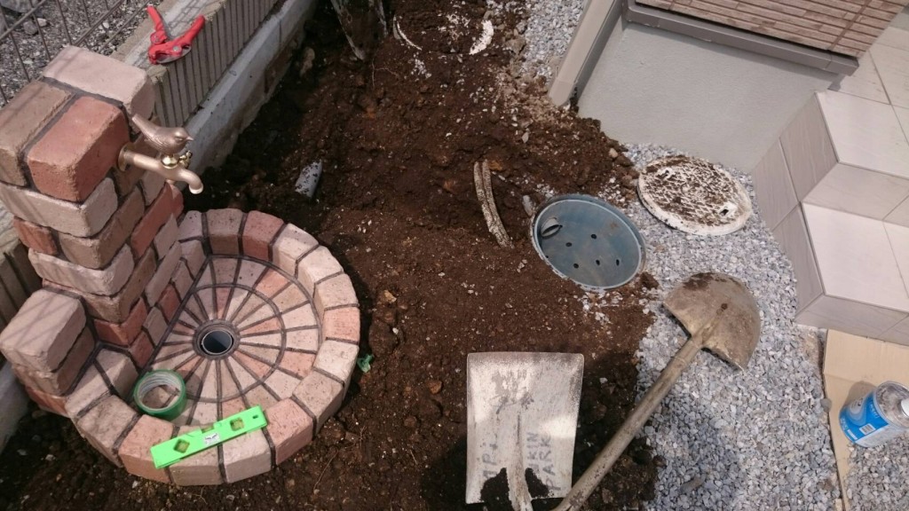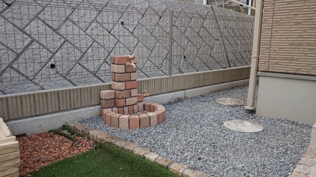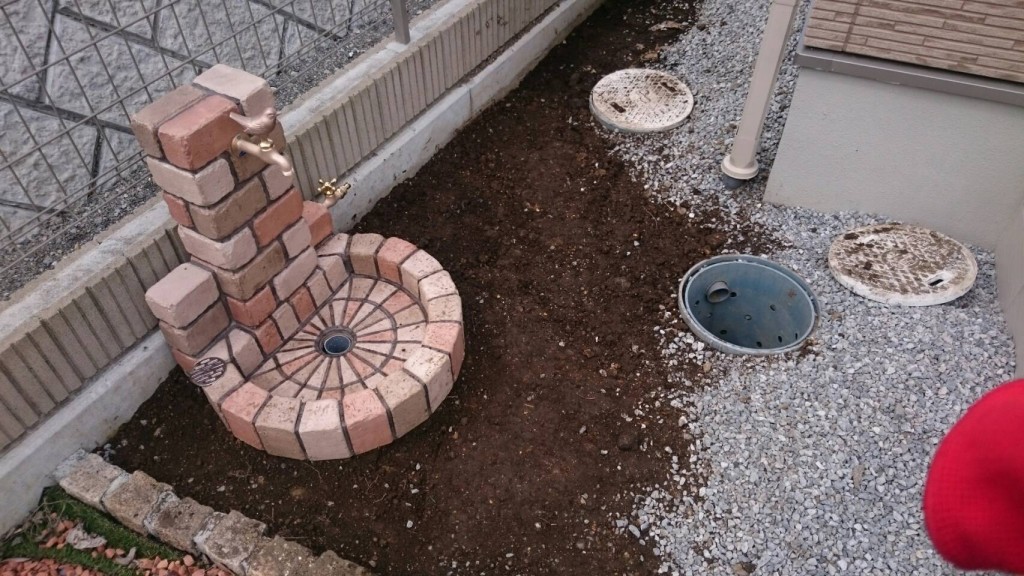 宇都宮市 K町の目隠しフェンス組、立水栓設備工事の作業と、