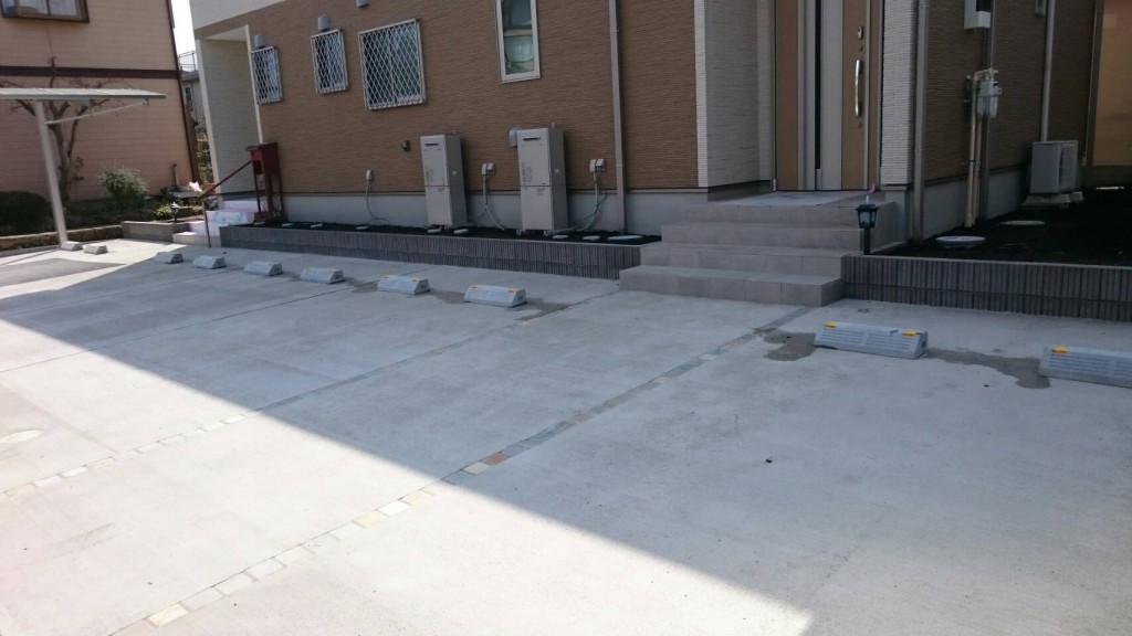 宇都宮市 I町の車止めブロック敷設の作業をして完工となりました。