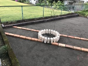 今日は那須塩原市のインターロッキング、見切りレンガ敷設、小端立て花壇の作業をしました。
