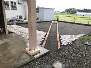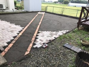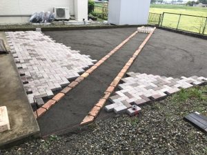 今日は那須塩原市のインターロッキング、見切りレンガ敷設、小端立て花壇の作業をしました。
