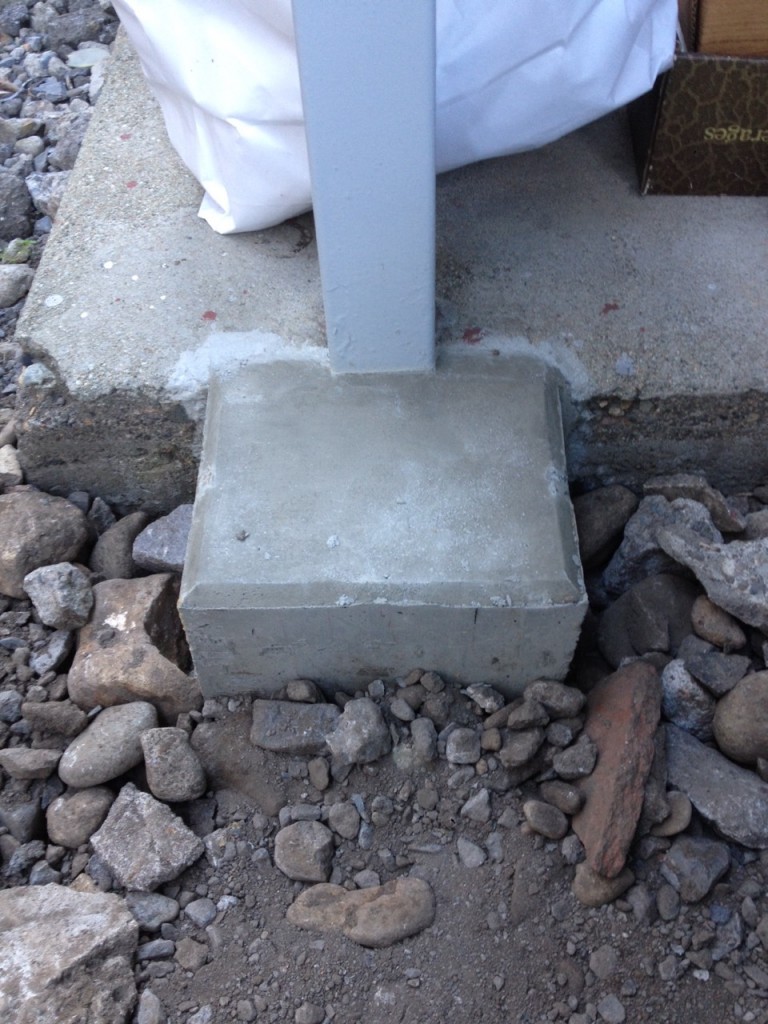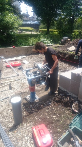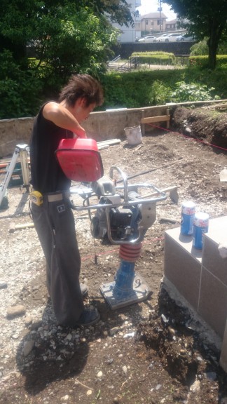 以前に掘削だけはしてあったので、今日はブロックベースの盤決め、枠組、ブロックベース生コン打設の作業をしました。