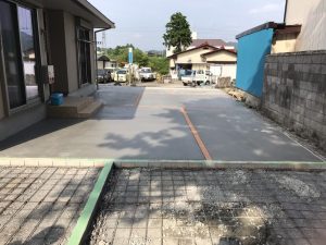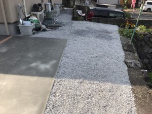 今日は日光市のブロック積、フェンス取付、防草シート敷き、6号砕石敷き、土間コン打設の作業をしました。